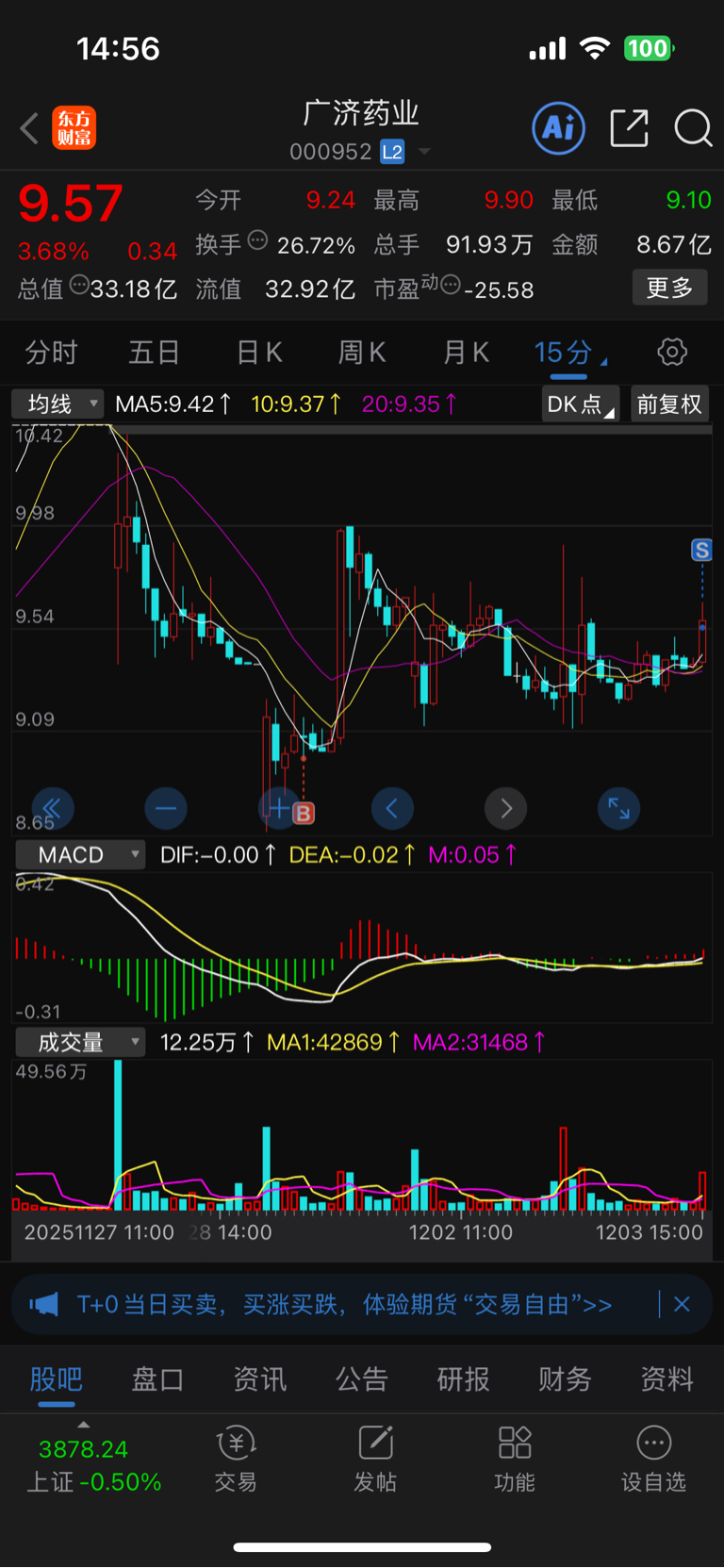 $广济药业(SZ000952)$ 9.54出了,剩下的 你们发财吧