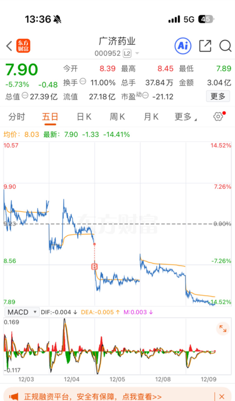 $广济药业(SZ000952)$ 你们是在说笑,而我是真的买了,亏到15个点就割肉,删除自选。