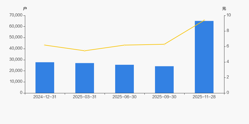 2024年12月31日至今,公司股东户数成倍增长,区间涨幅达134.25%。2024年12月31日至2025年11月28日区间股价上涨51.78%。