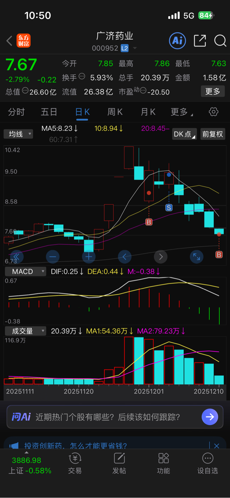 $广济药业(SZ000952)$ 我又回来抄底了,7.67买进