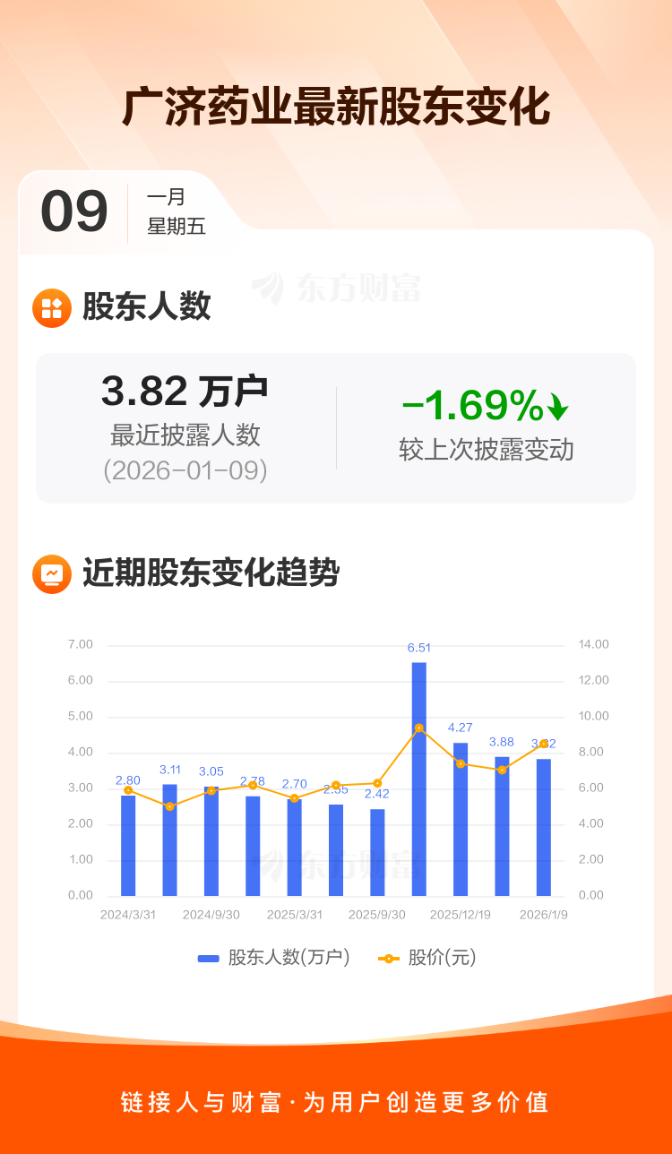 广济药业:截至1月9日最新股东户数3.82万户,较上期减少1.69%