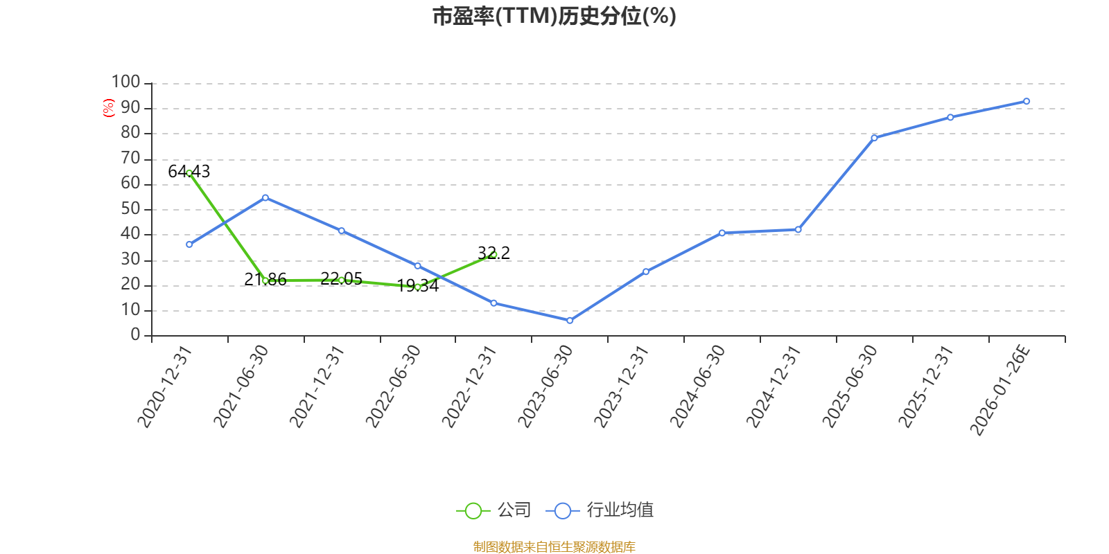 以本次披露业绩预告均值计算,公司近年市盈率(TTM)图如下所示: