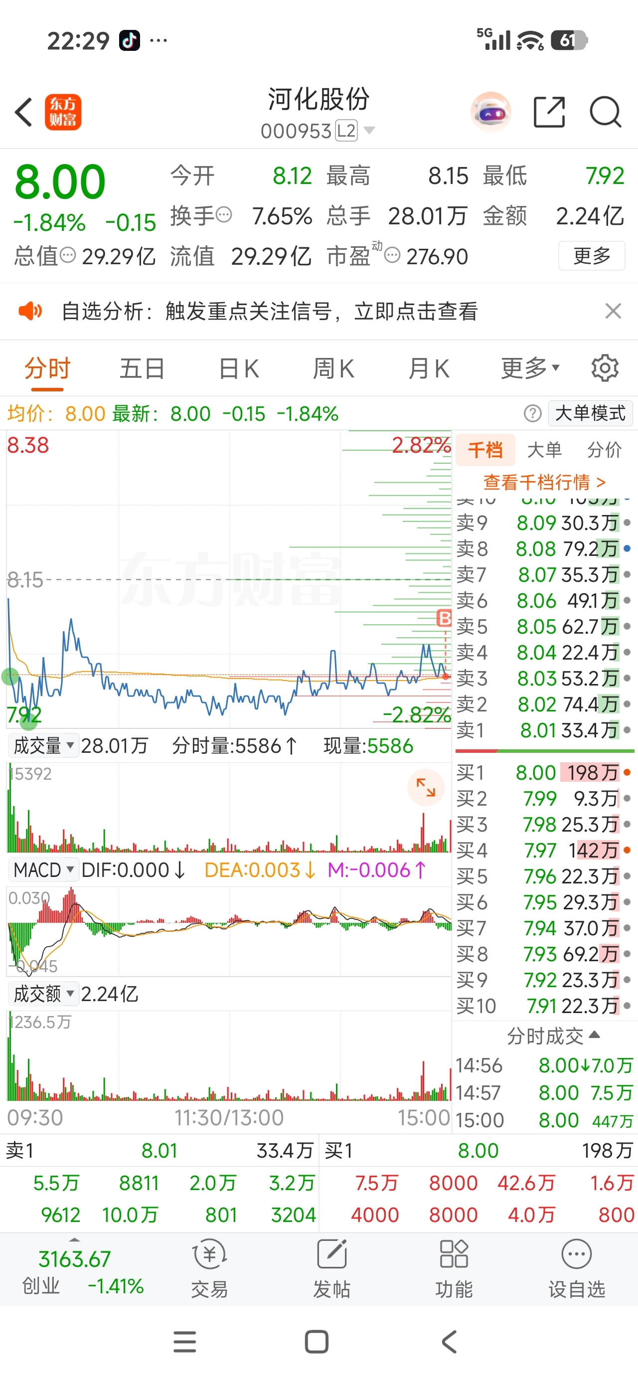 $河化股份(SZ000953)$ 主力哥哥,明天拉起来