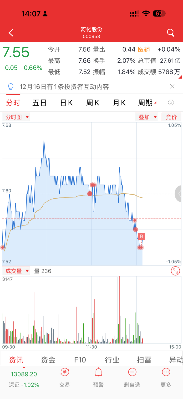 $河化股份(SZ000953)$ 说到做到,我进来了,你跌我补。