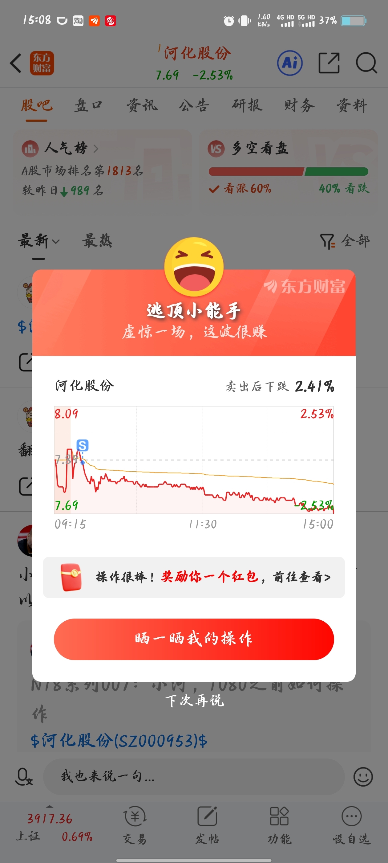 $河化股份(SZ000953)$ 跑了三分之一去普路通吃了六个点,加起来就吃了八个多点了,爽,等我在外面赚钱回来接你,河化牢弟多跌点