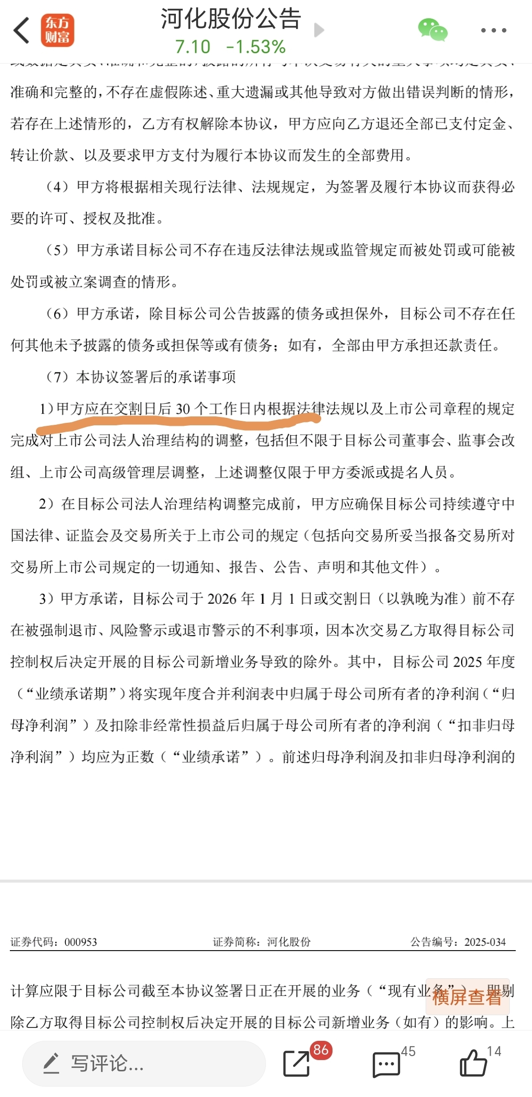 按此前相关公告,交割完成三十个工作日完成上市公司法人治理结构的调整,截止今天,应