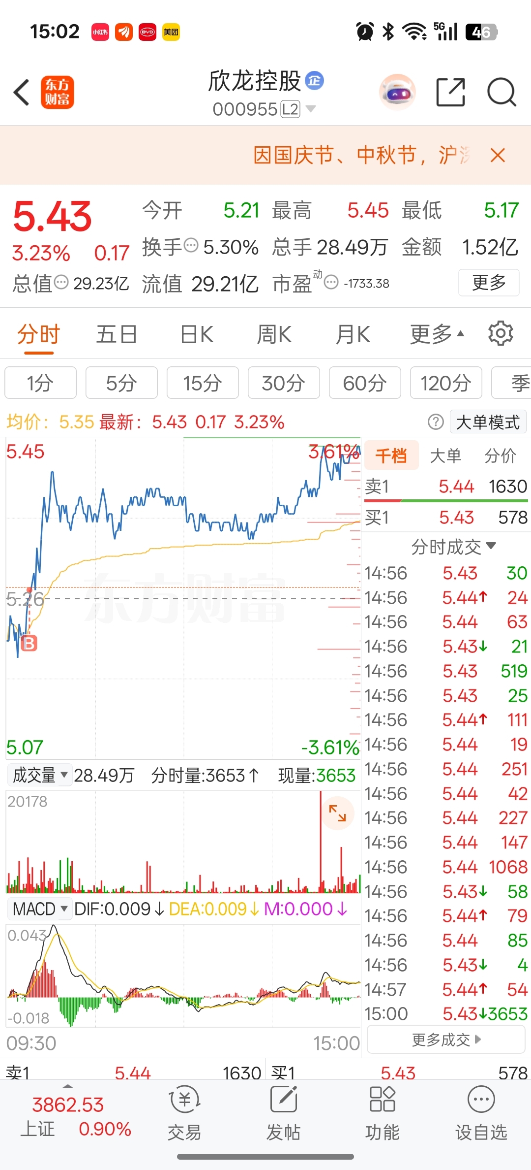 $欣龙控股(SZ000955)$ 形态非常好,一般我的自选选出来的都能让我赚钱,这个亦不例外,目标15个点,吃完走人。