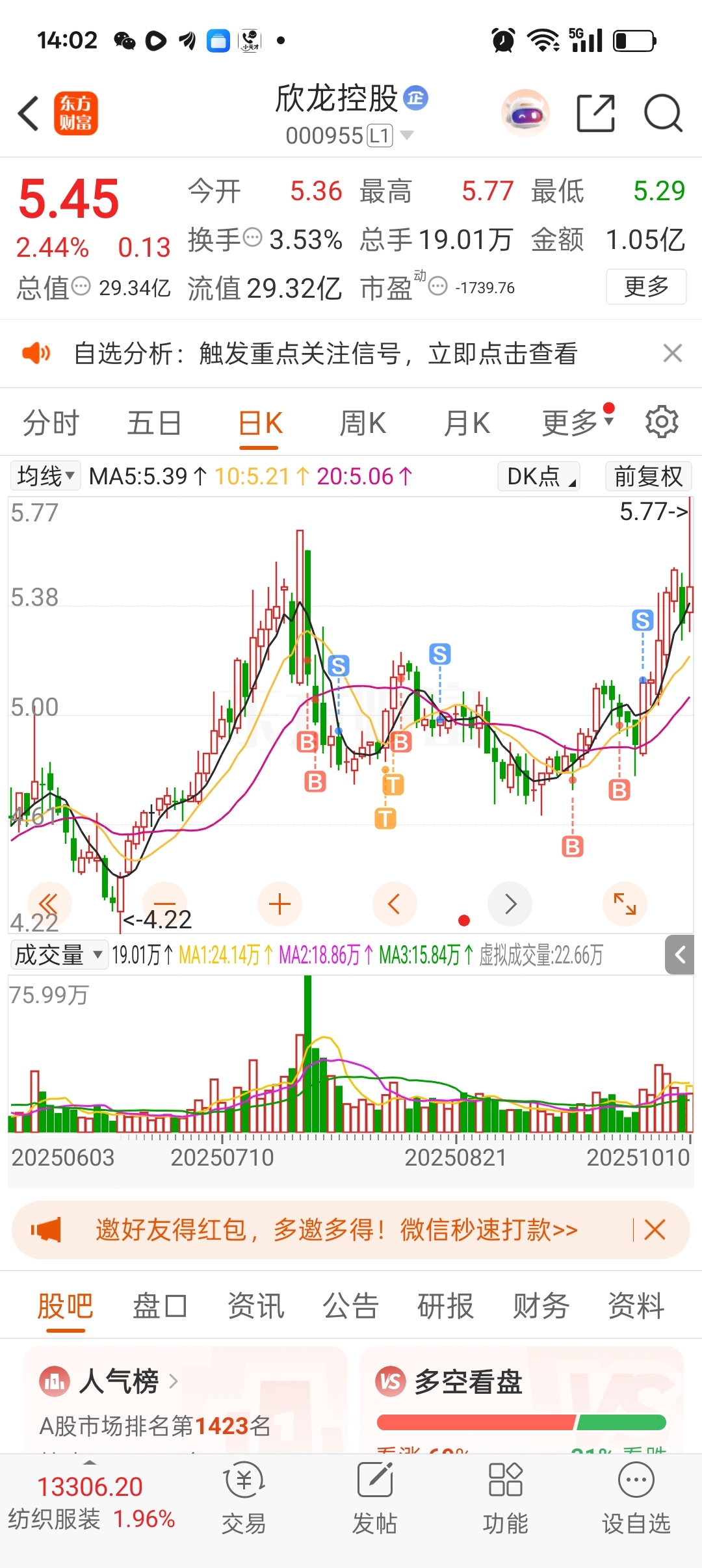 $欣龙控股(SZ000955)$ 站稳5.65进场