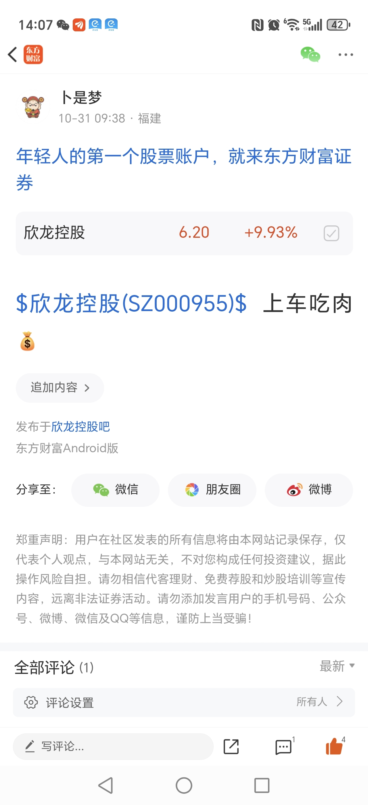温馨提示: 1.根据《证券法》规定,禁止编造、传播虚假信息或者误导性信息,扰乱证券市场;2.用户在本社区发表的所有资料、言论等仅代表个人观点,与本网站立场无关,不对您构成任何投资建议。用户应基于自己的独立判断,自行决定证券投资并承担相应风险。《东方财富社区管理规定》