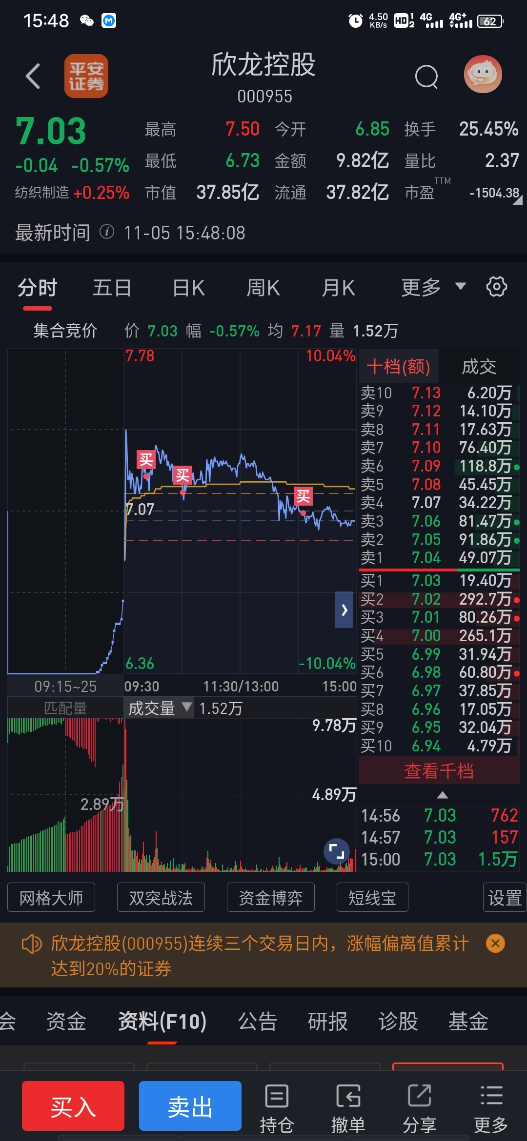 早上卖飞了智光电气,来接盘欣龙控股了,评论价格7.14,被埋了,好痛