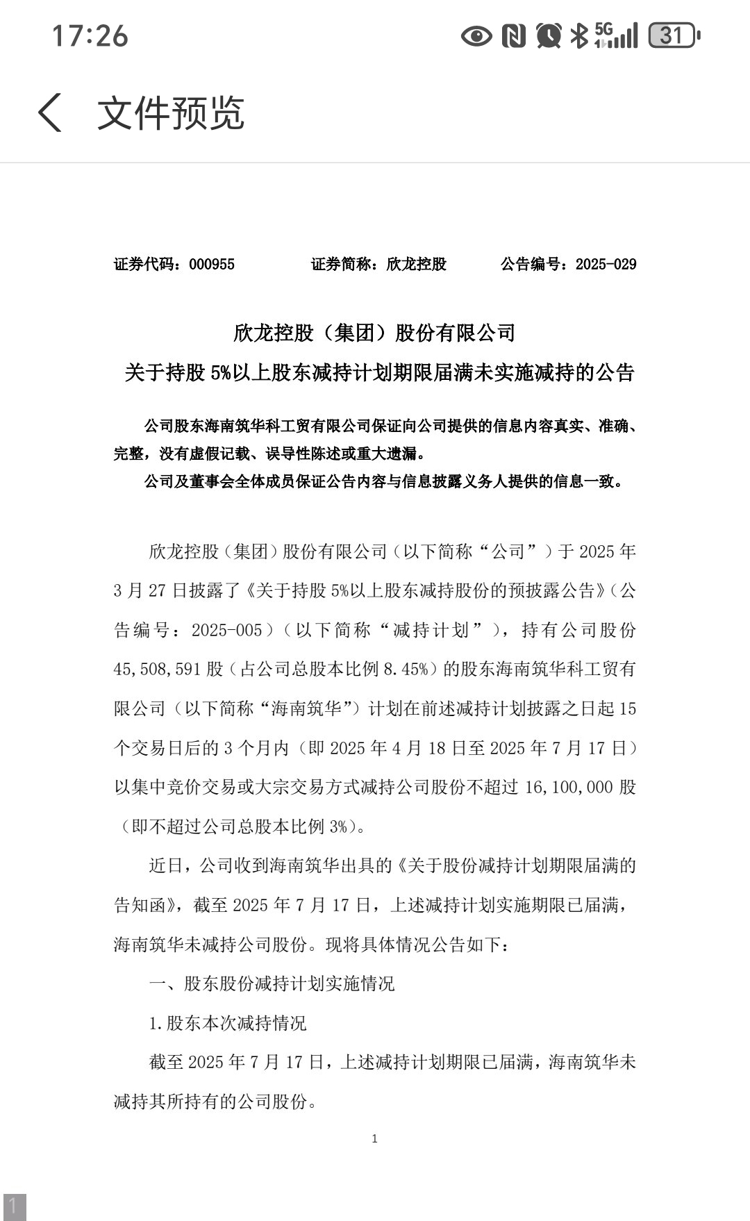 $欣龙控股(SZ000955)$ 减持公告7月19日已经发过了