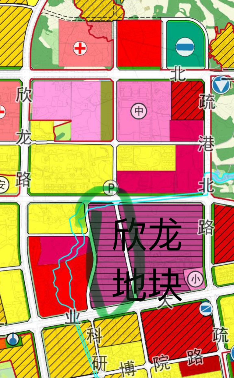 根据澄迈25年最新的城区规划,欣龙地块大概有三分之一的面积(图中绿色圈中部分)会