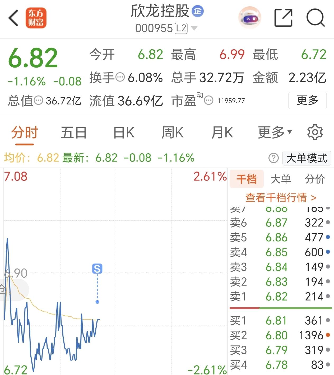 $欣龙控股(SZ000955)$ 吓死了,以为要涨停了,下来我要接回去
