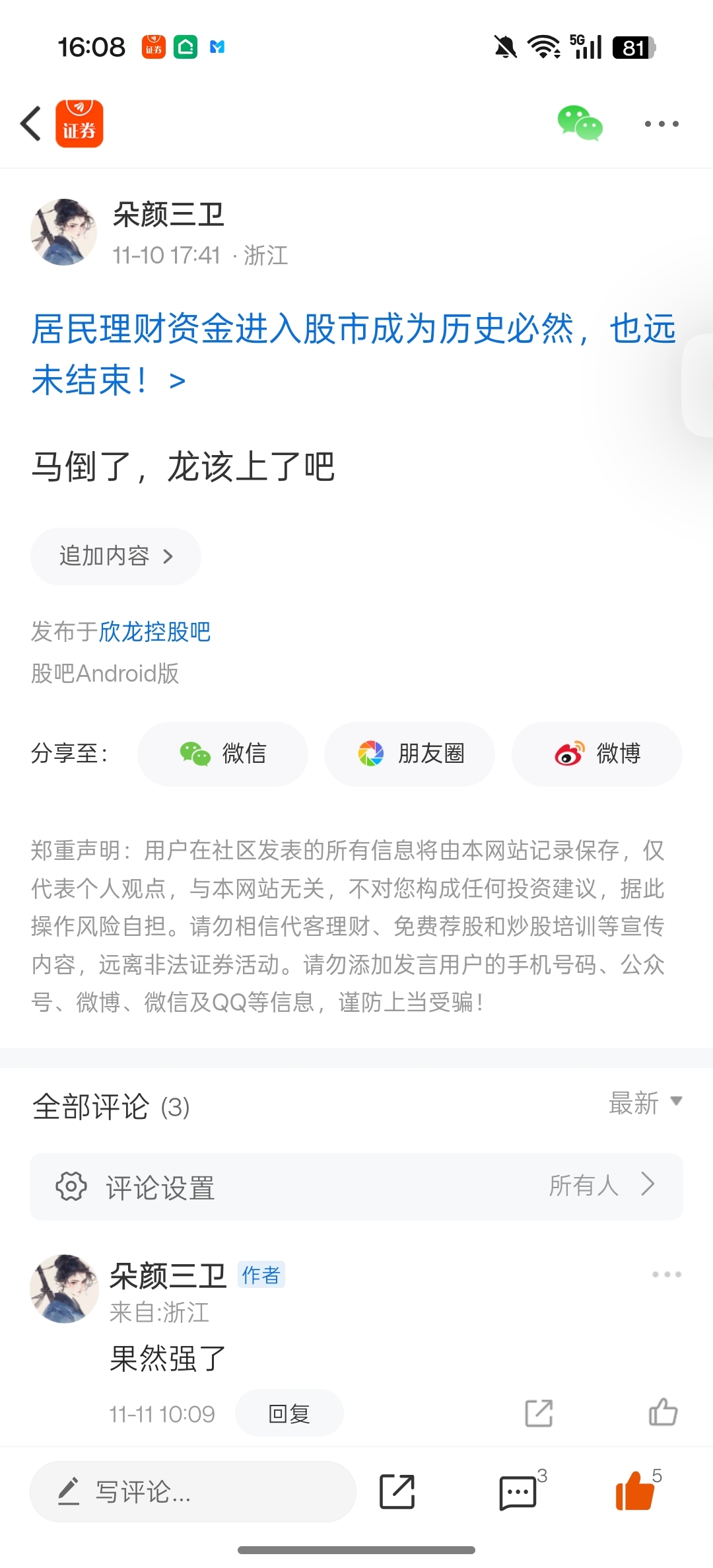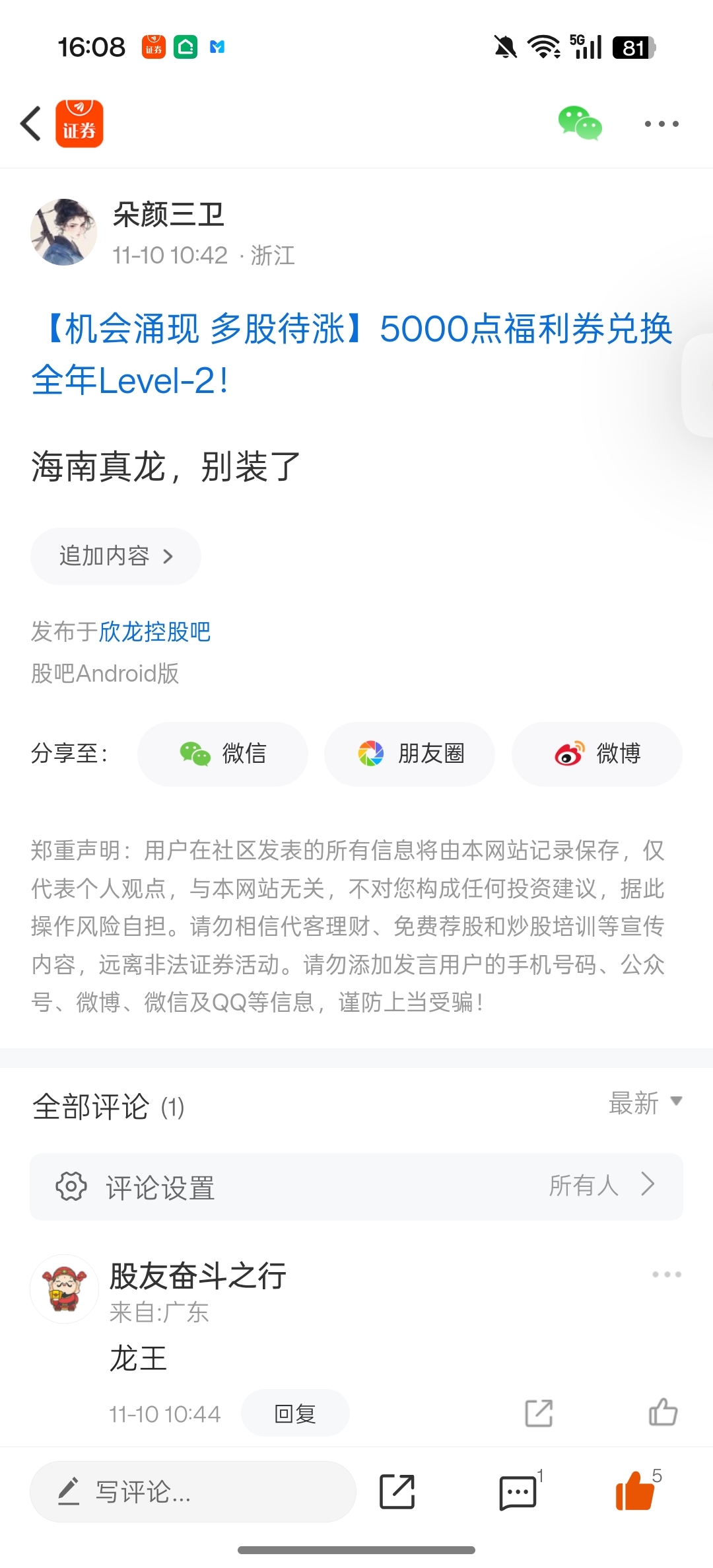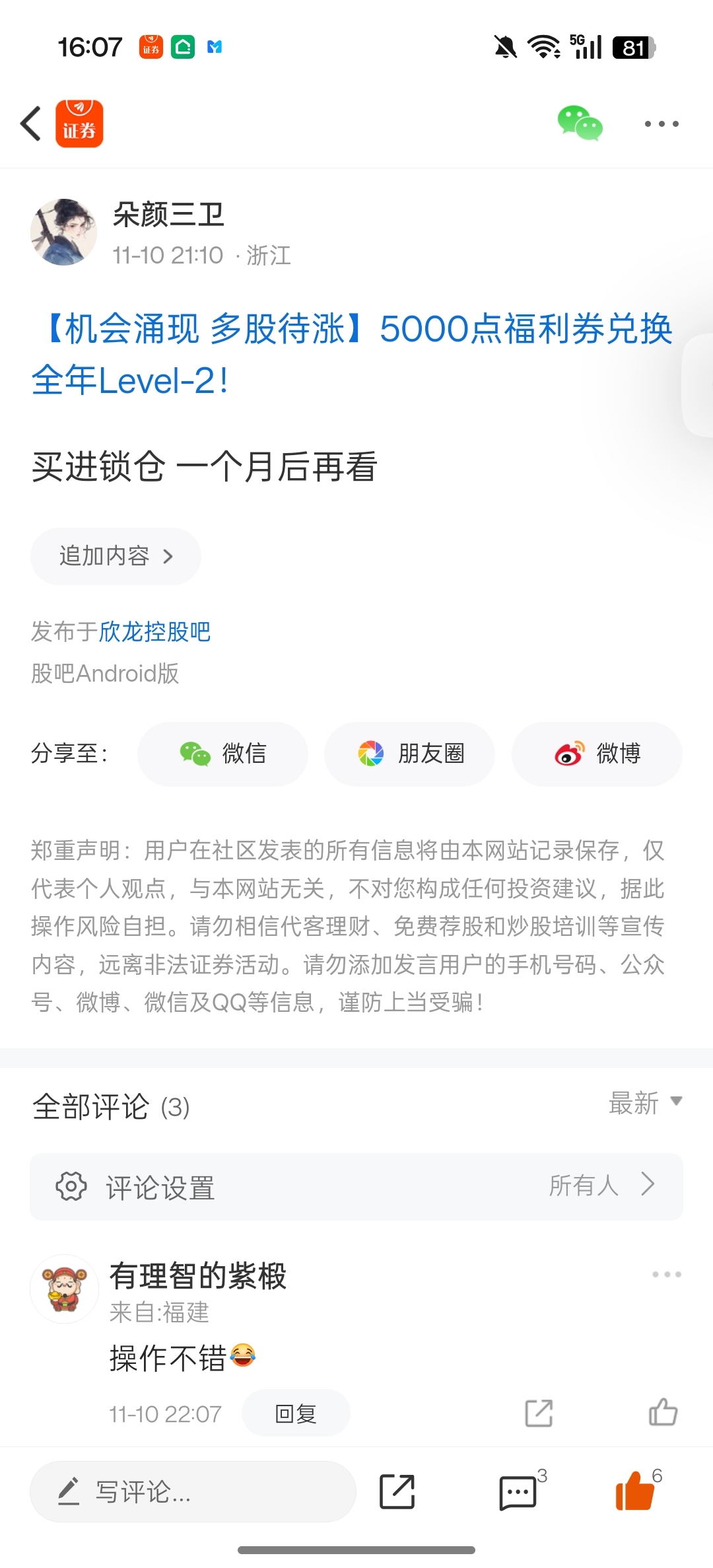 温馨提示: 1.根据《证券法》规定,禁止编造、传播虚假信息或者误导性信息,扰乱证券市场;2.用户在本社区发表的所有资料、言论等仅代表个人观点,与本网站立场无关,不对您构成任何投资建议。用户应基于自己的独立判断,自行决定证券投资并承担相应风险。《东方财富社区管理规定》