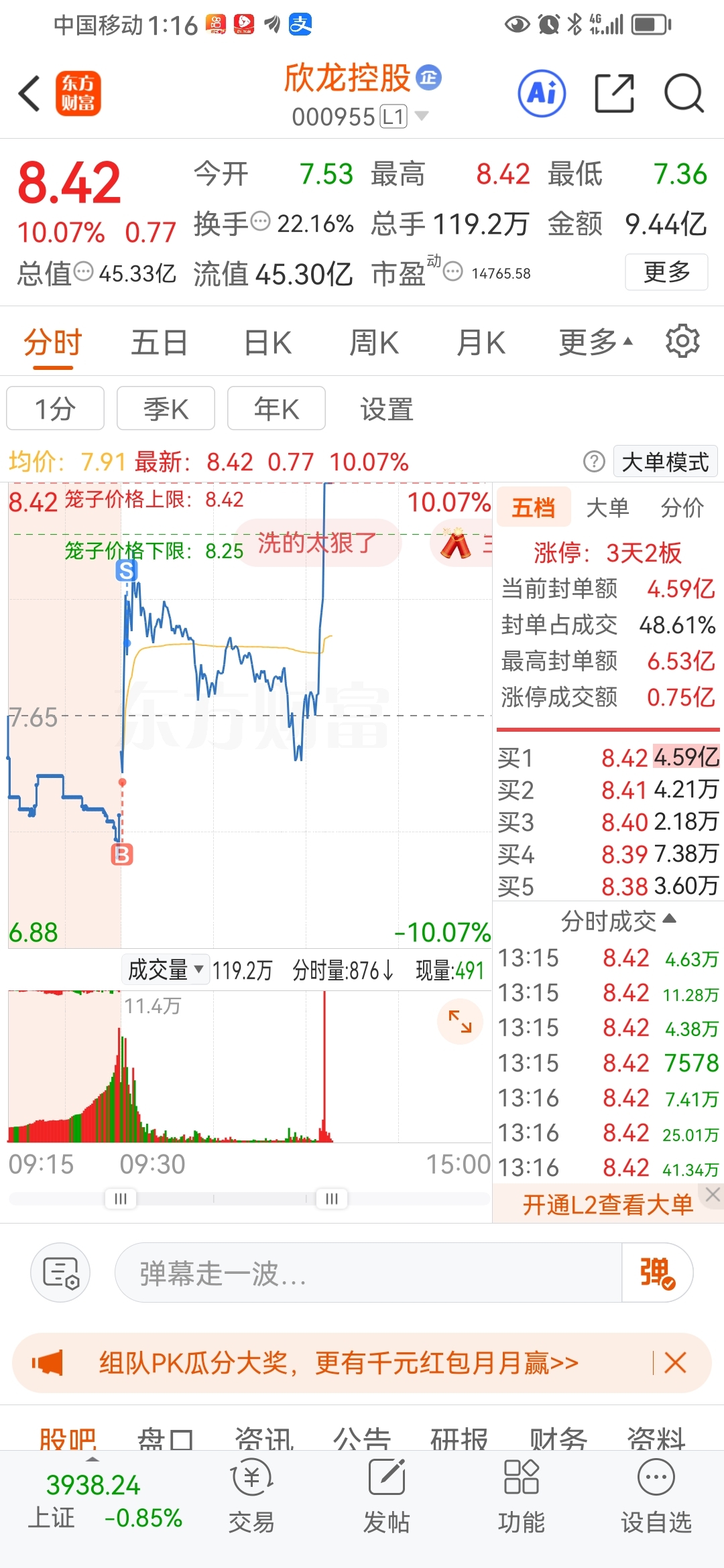 $欣龙控股(SZ000955)$ 第一目标市值200亿,这个月完成任务