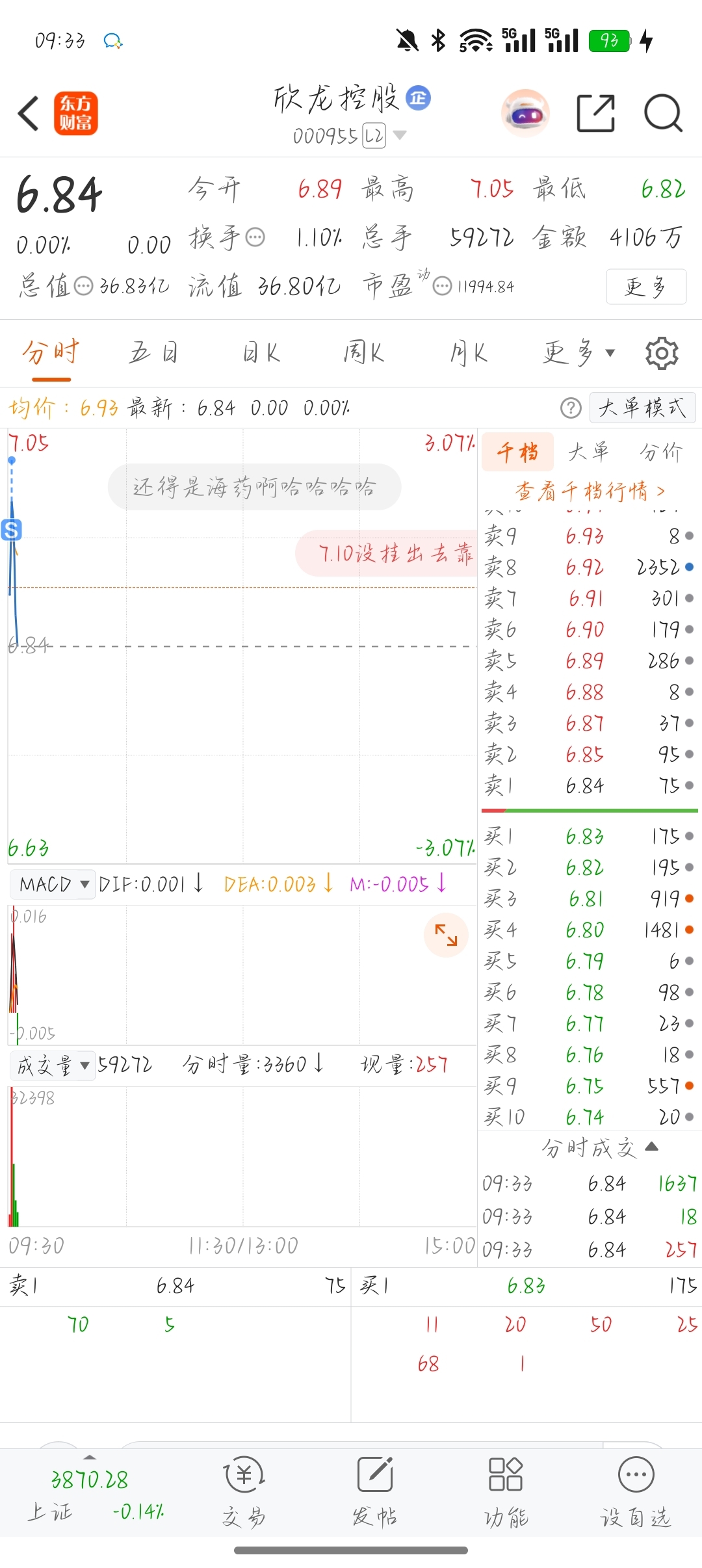 $欣龙控股(SZ000955)$ 每天一个样,这种票太好操作了,,,
