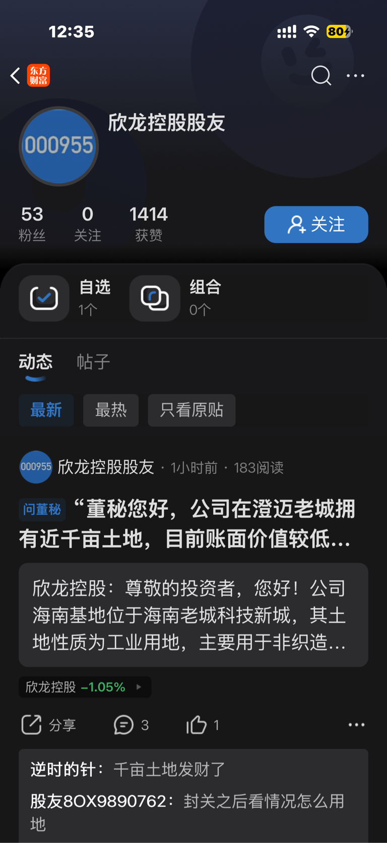 $欣龙控股(SZ000955)$ 这是公司小号自问自答吧