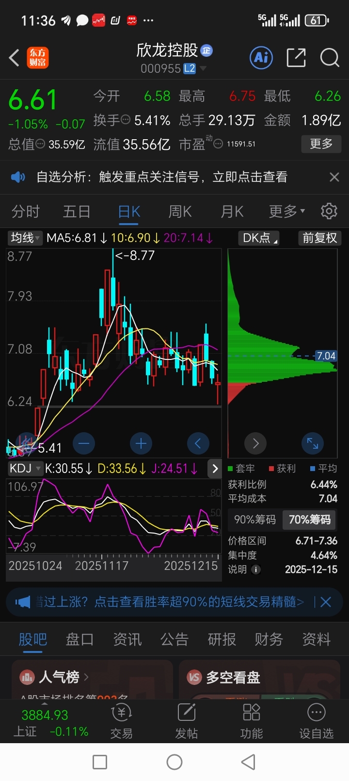 听说欣龙控股出大利好了,平均成本7块多,最低筹码6.7多,最低涨10几个点,保佑