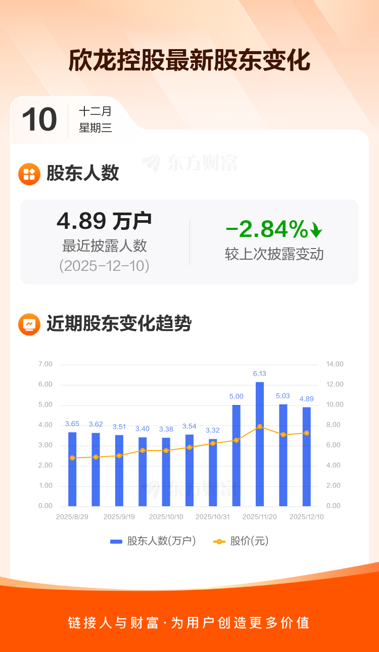 欣龙控股:截至12月10日最新股东户数4.89万户,较上期减少2.84%