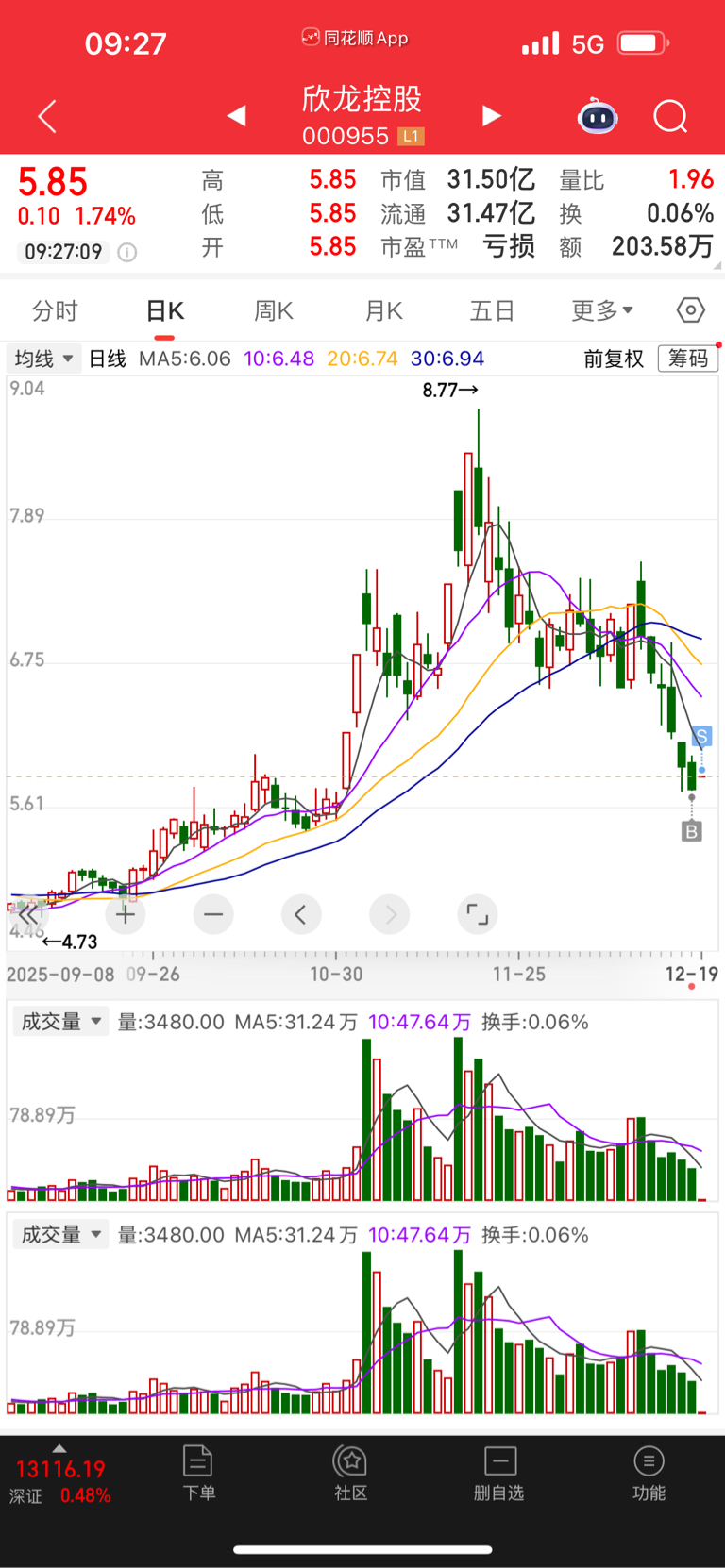 $欣龙控股(SZ000955)$ 怎么把我评论删了?我竞价发的,不敢格局这票,感谢主力大哥给机会