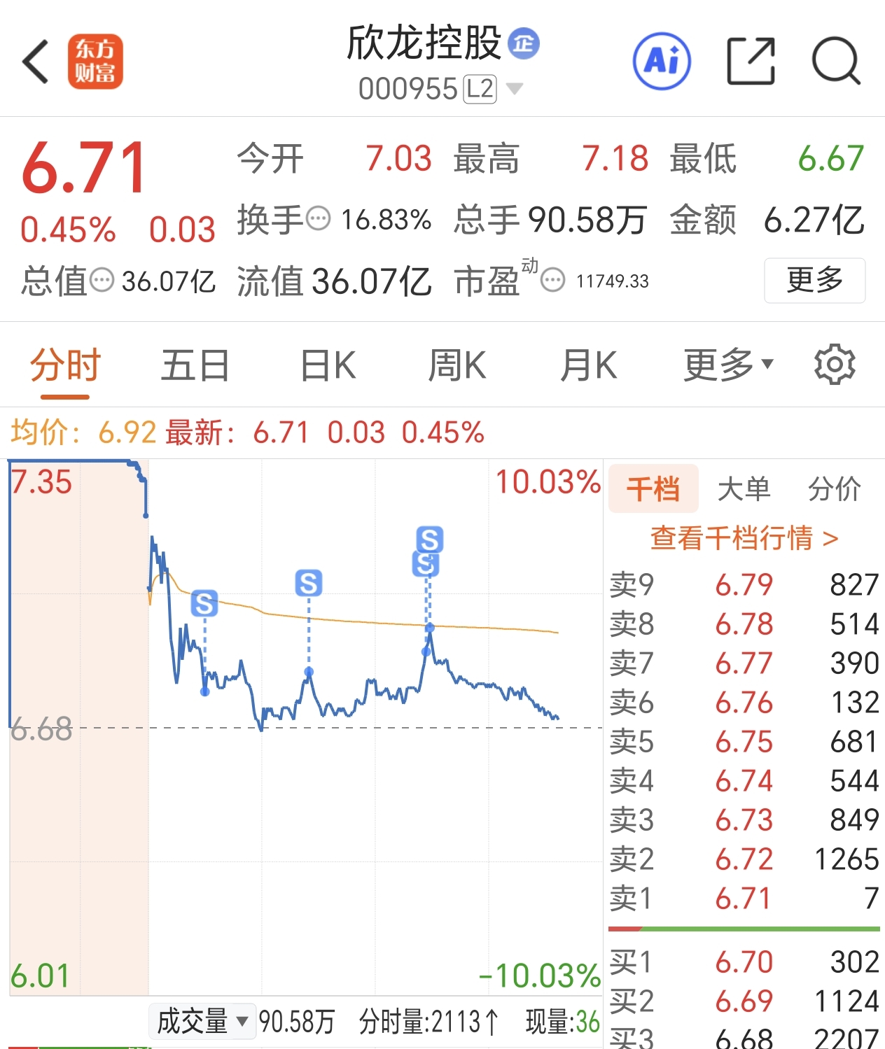 $欣龙控股(SZ000955)$ 走了走了,放量滞涨是啥来着?