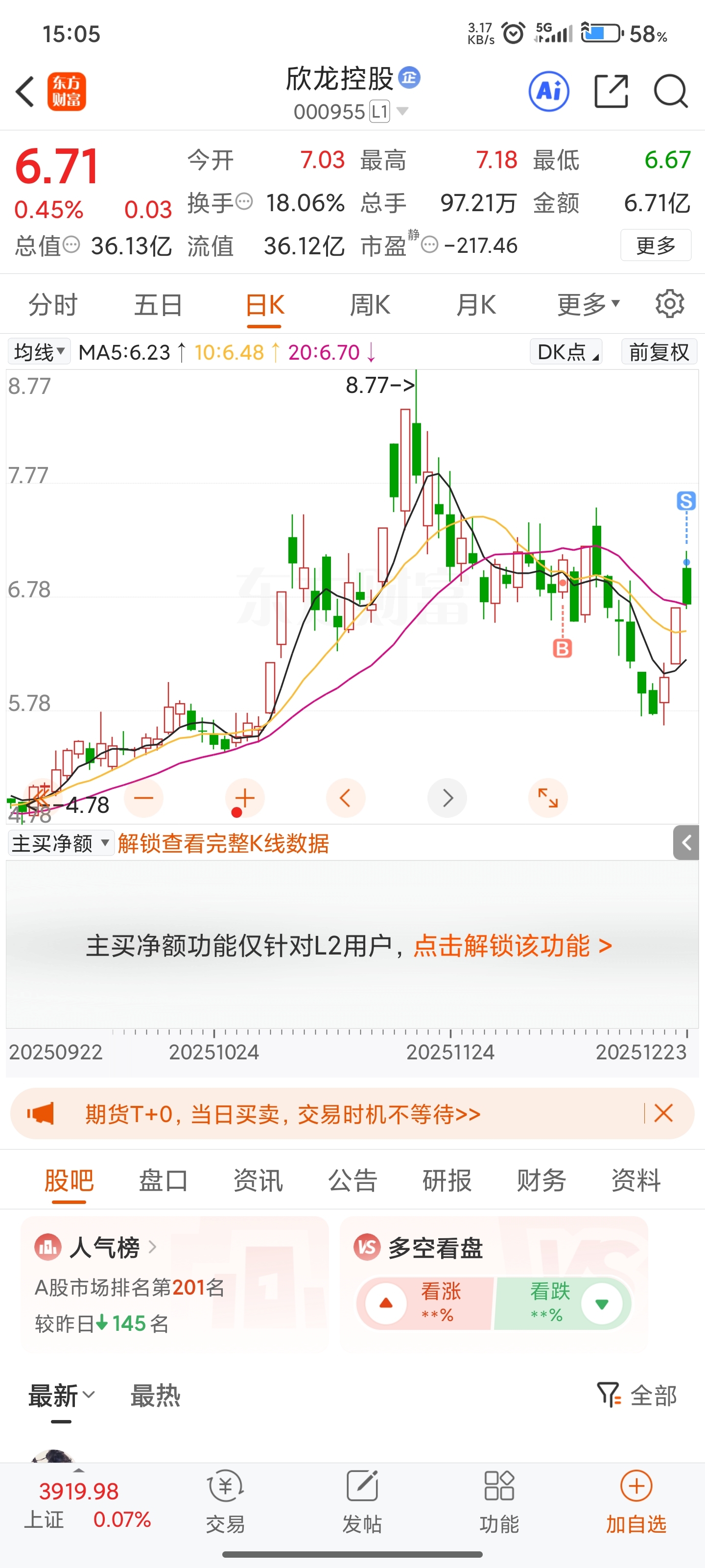 $欣龙控股(SZ000955)$ 谢谢给跑路的机会,6.9买的,涨到7.56没卖,一路跌到5块多,今天开盘7.08果断卖了
