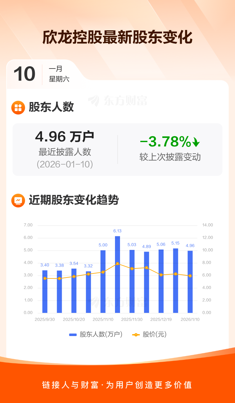 欣龙控股:截至1月10日最新股东户数4.96万户,较上期减少3.78%