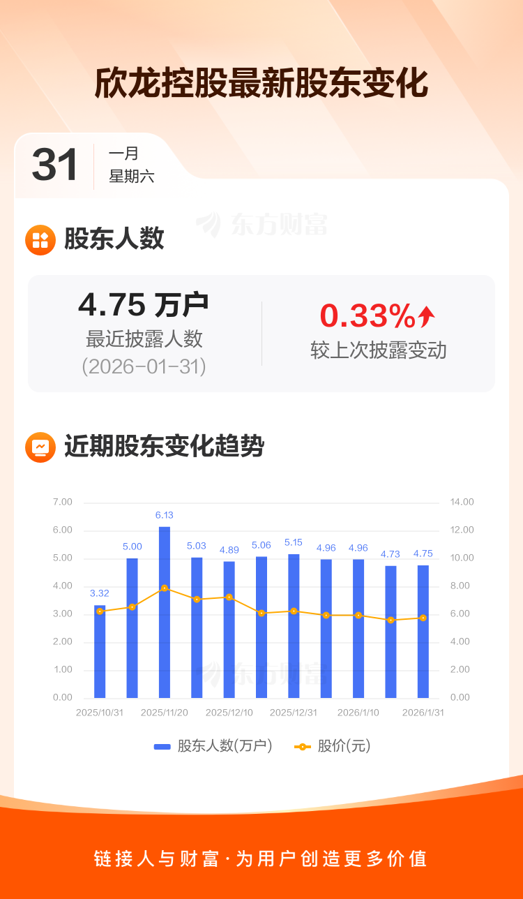 欣龙控股:截至1月31日最新股东户数4.75万户,较上期增加0.33%