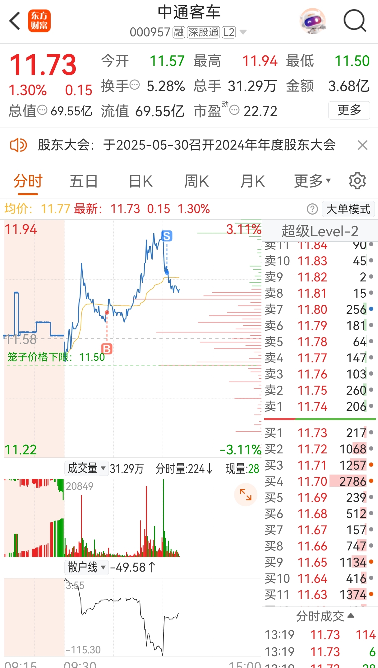 $中通客车(SZ000957)$ 仓位已经T出来了是突破站稳12,更上一层楼加仓,还是接着跌到下轨让我低吸!