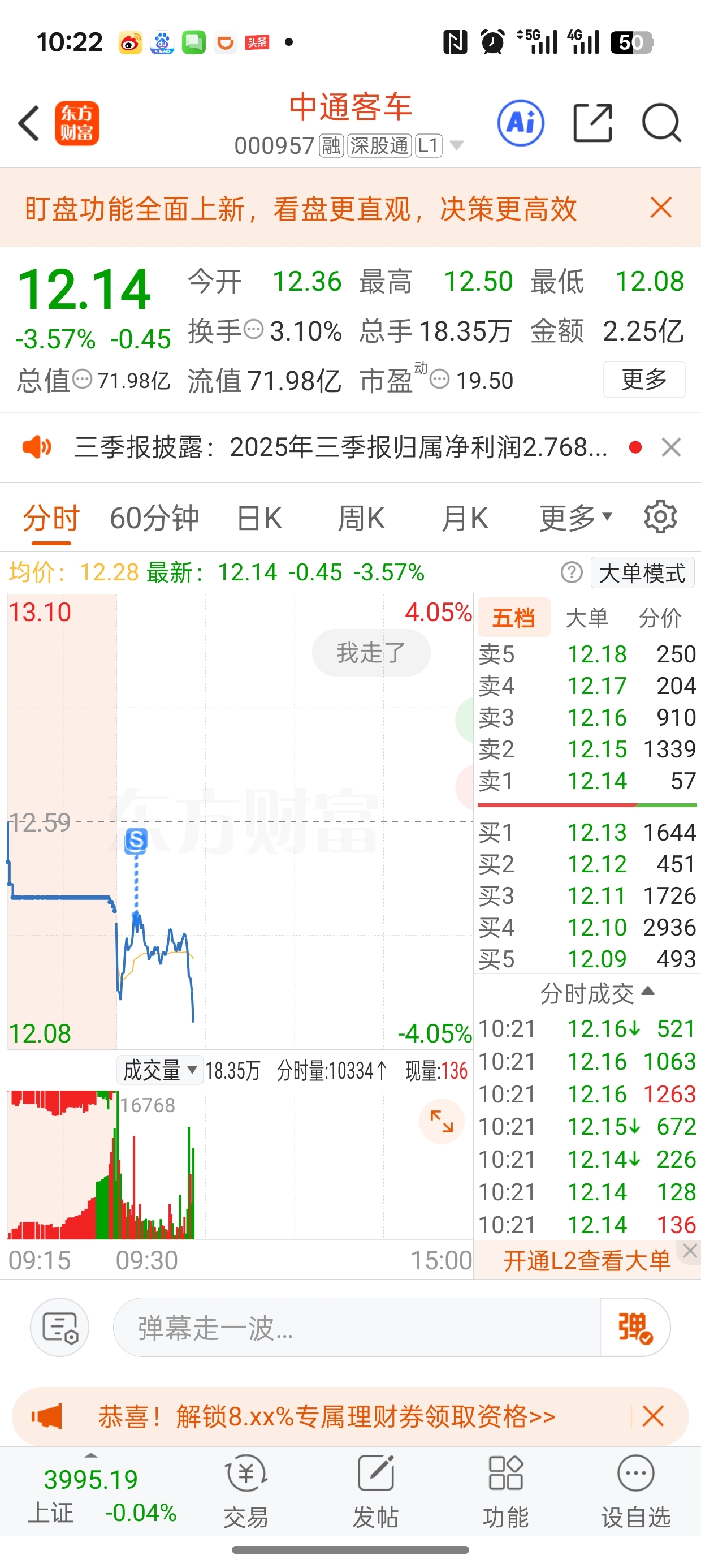 $中通客车(SZ000957)$ 业绩不及预期该跑还得跑,过段时间我还会回来的