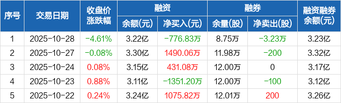 中通客车:融资净偿还776.83万元,融资余额3.22亿元(10-28)