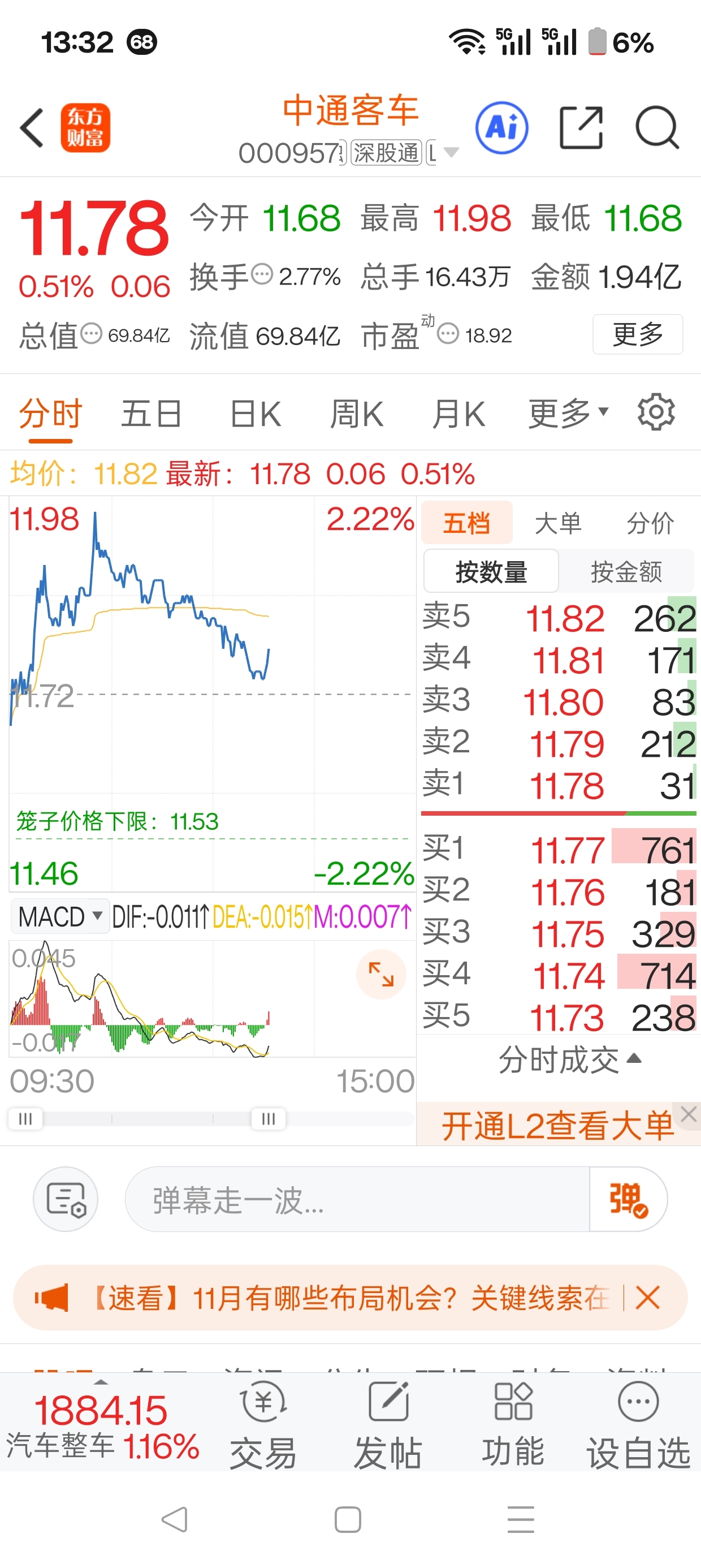 $中通客车(SZ000957)$ 买去,快买入!科技股跌了,轮到汽车了