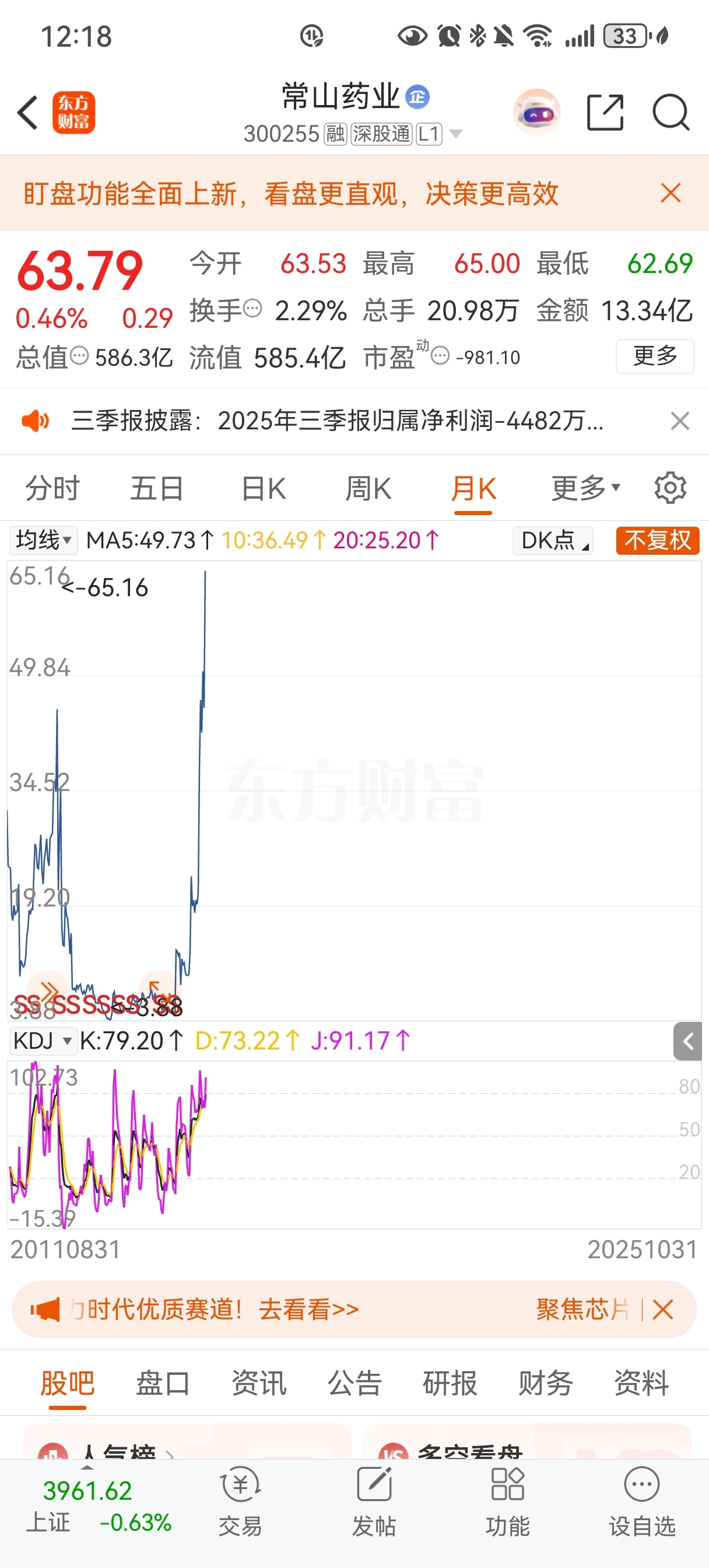 等我常山药业上了100元之后,我会卖出,然后来抄底中通。。