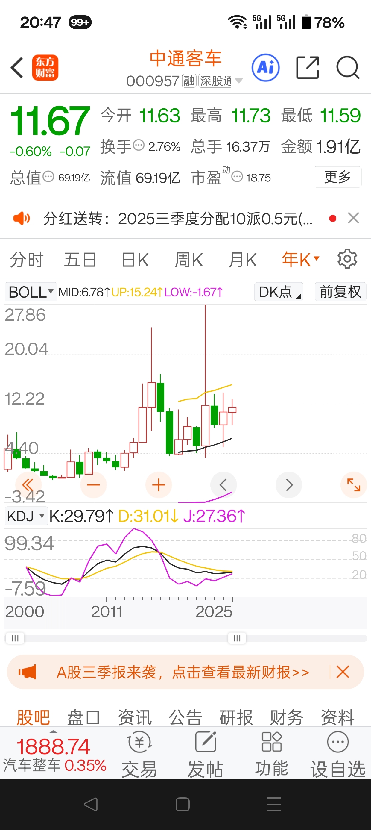 $中通客车(SZ000957)$ 关键是这股三年前炒过了,过后都要调整四年,第五年开始涨。目前时间没到。不过,不用担心,当时熊市都能炒到27元,现在牛市,大家耐心点,看图,炒到47元没问题的。明年再调整一年就可以涨了,大家安心持股过年。