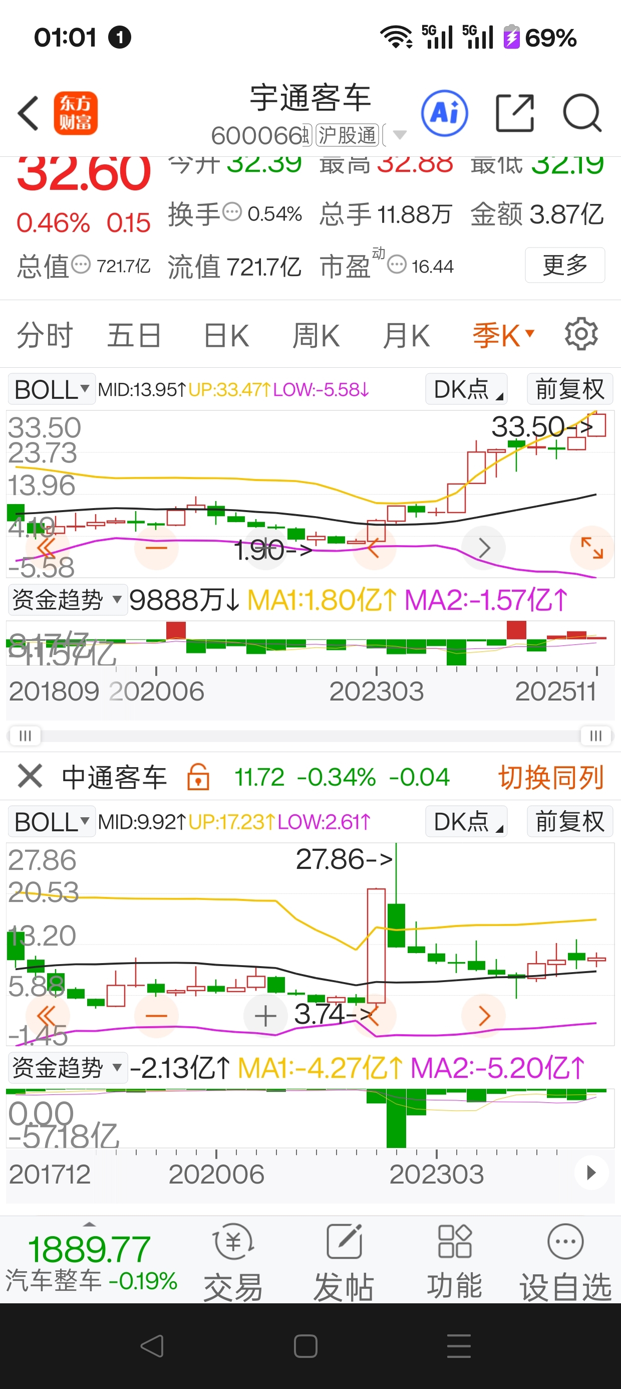 $中通客车(SZ000957)$ 宇通客车是补涨,中通客车是不是还债。比较图一看就知道了。