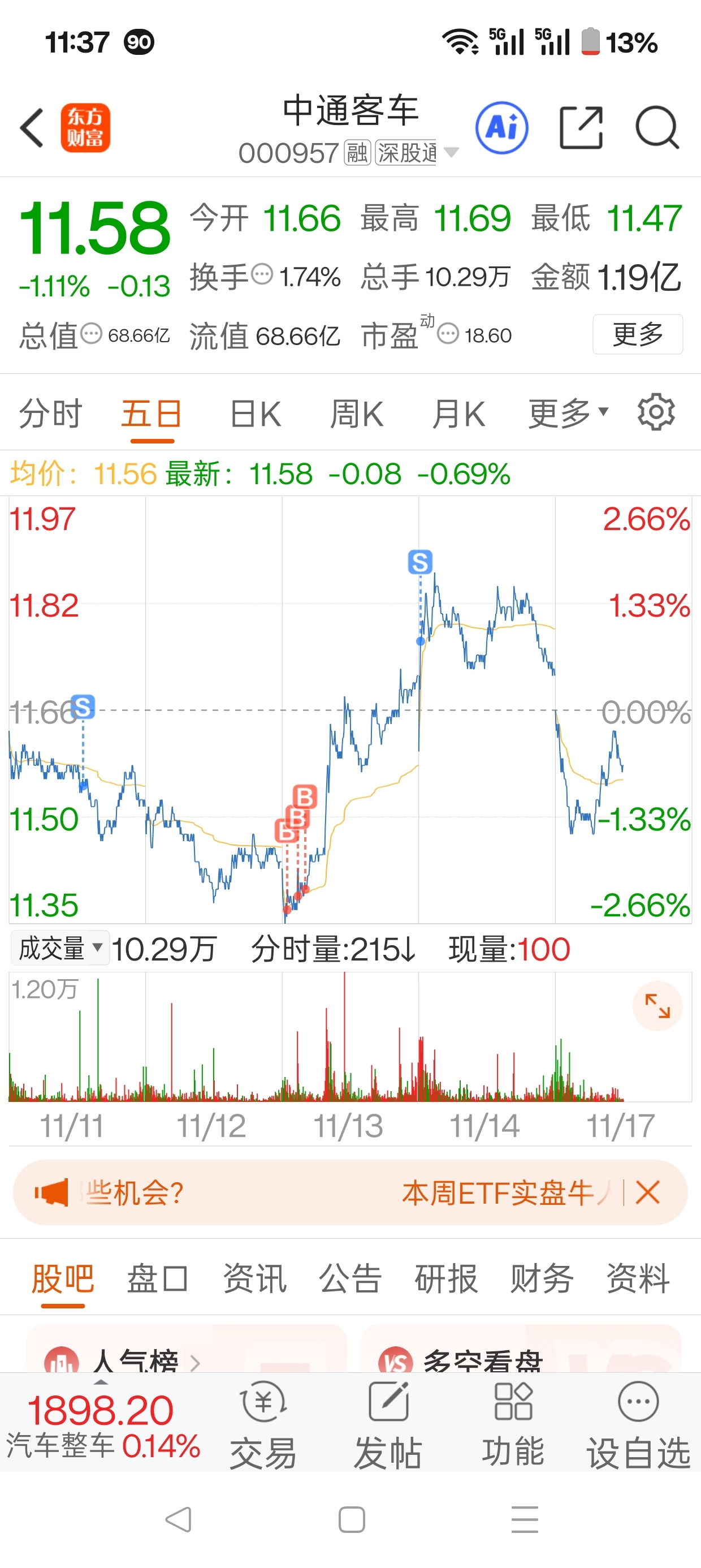 $中通客车(SZ000957)$ 割肉了,杀跌。