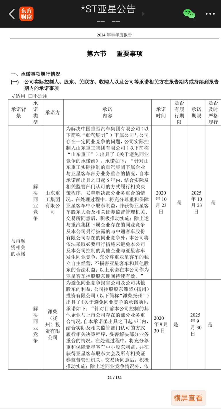 亚星客车2024年中报披露,山东重工集团解决中通客车和亚星客车的同业竞争问题于2