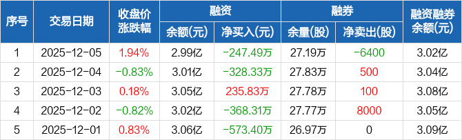 中通客车:融资净偿还247.49万元,融资余额2.99亿元(12-05)