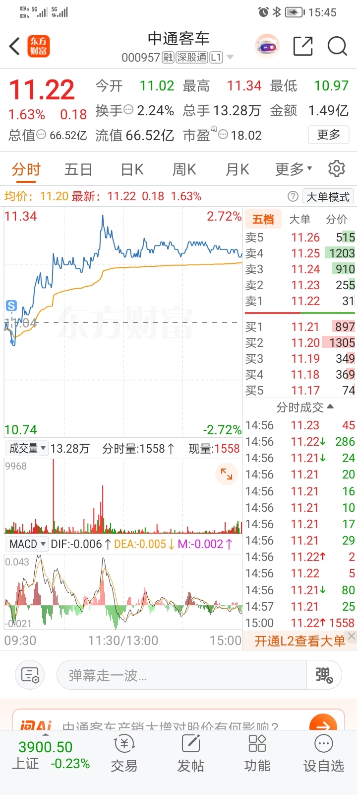 $中通客车(SZ000957)$ 卖飞了