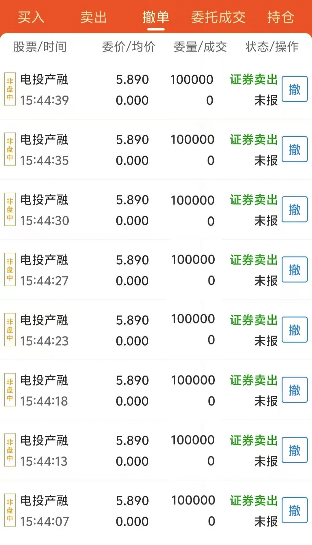 $电投产融(SZ000958)$ 怎么不让我发这贴 谁给我删了? 最后的一成底仓也排队出去试试看能不能给机会 等三块再逐步加仓