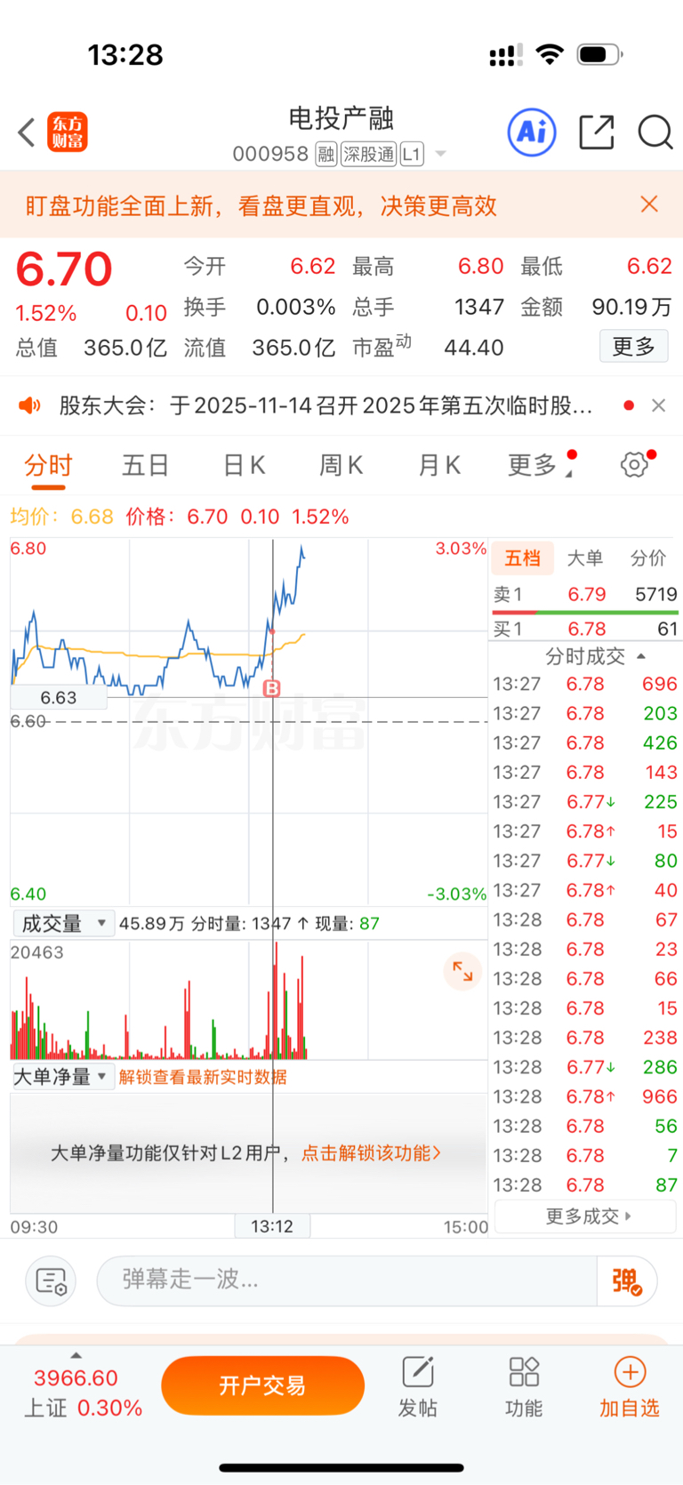 午盘选择6.70元介入$电投产融(SZ000958)$ #强势机会# #实盘记录# #投资干货# #投资随笔#
