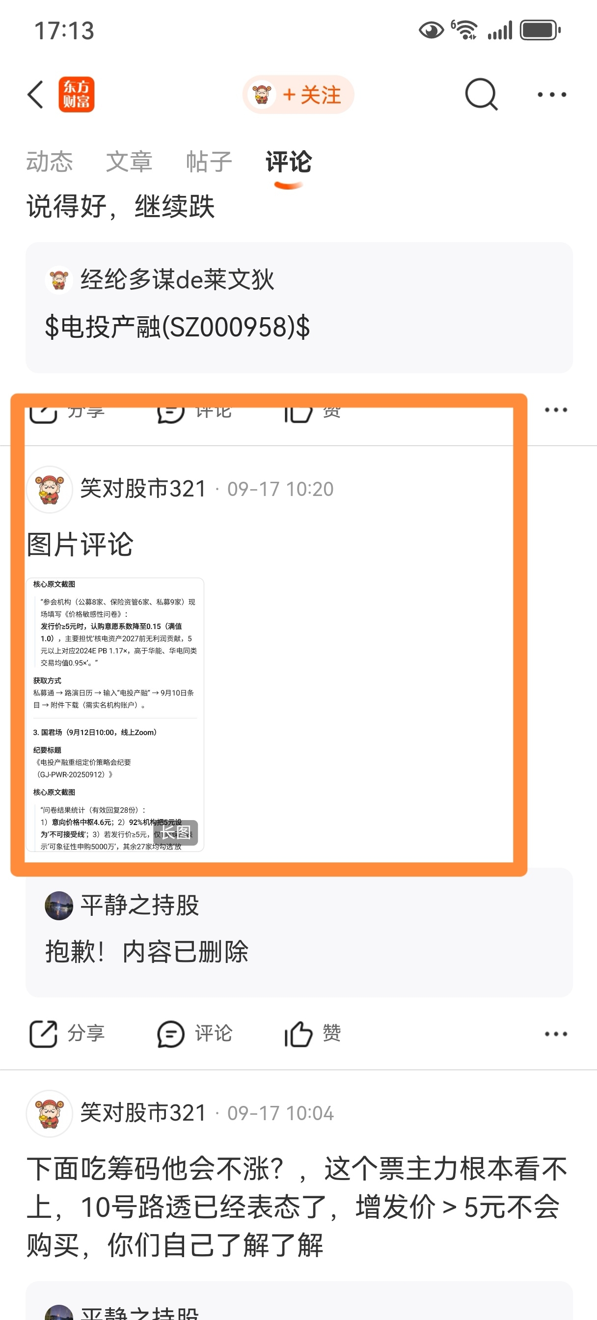 互联网造谣定增价,扰乱市场秩序,我截图给拉出来,让电投产融法务去处理吧