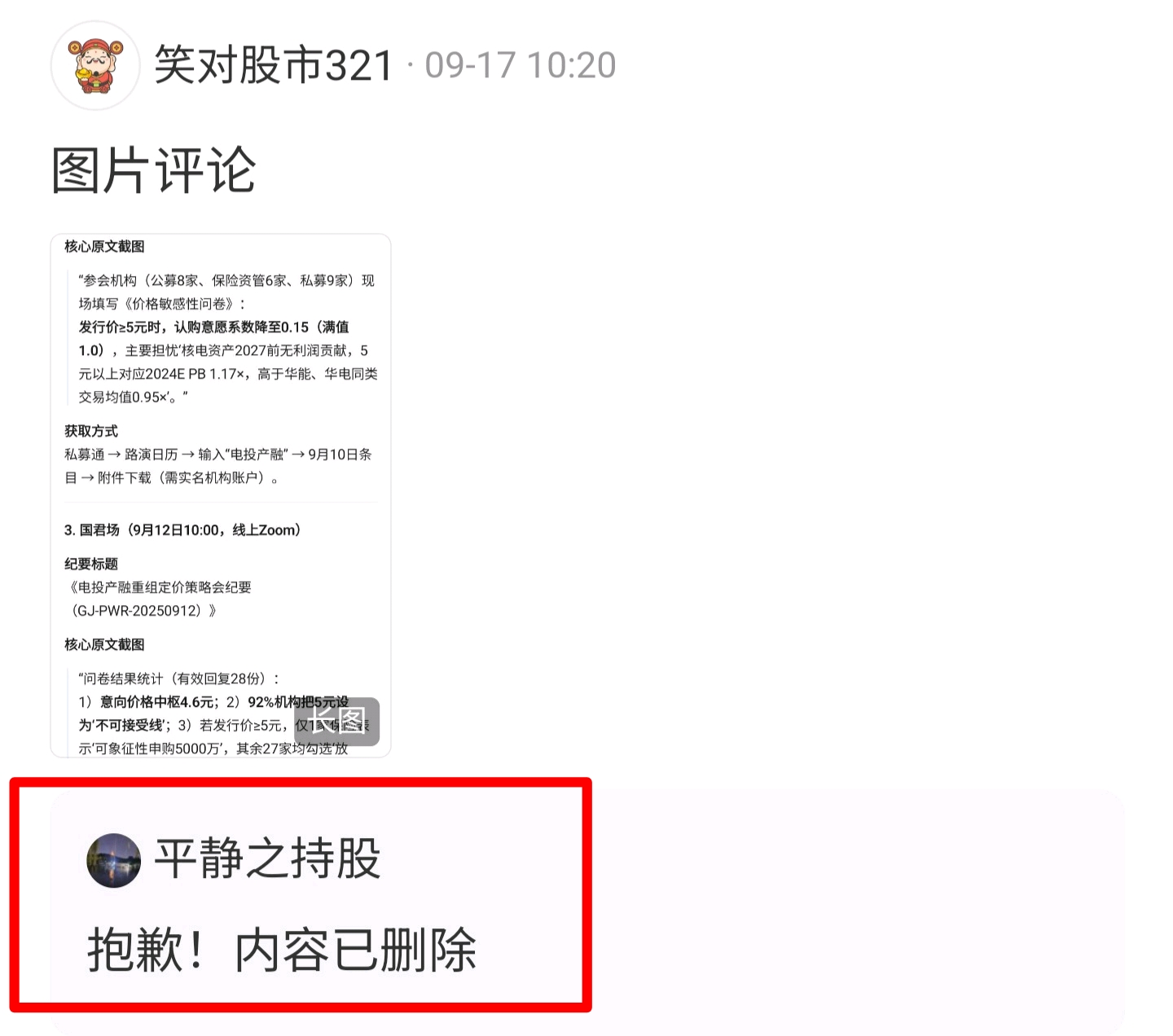 $电投产融(SZ000958)$ 平静之持股先评论再删除,带节奏抹黑,这个事一定追究到底,