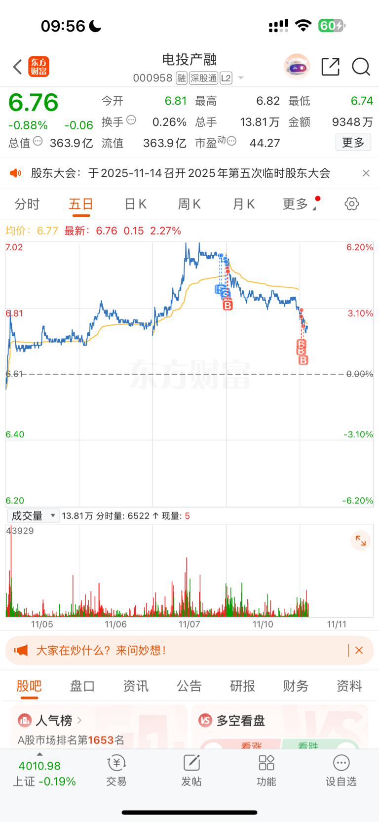 $电投产融(SZ000958)$ 买买买
