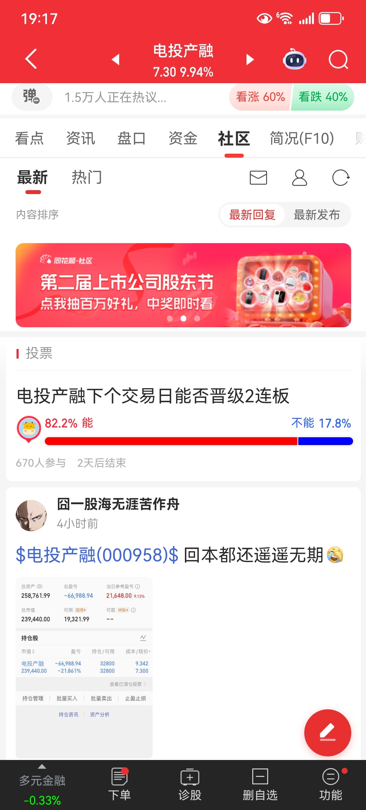 温馨提示: 1.根据《证券法》规定,禁止编造、传播虚假信息或者误导性信息,扰乱证券市场;2.用户在本社区发表的所有资料、言论等仅代表个人观点,与本网站立场无关,不对您构成任何投资建议。用户应基于自己的独立判断,自行决定证券投资并承担相应风险。《东方财富社区管理规定》