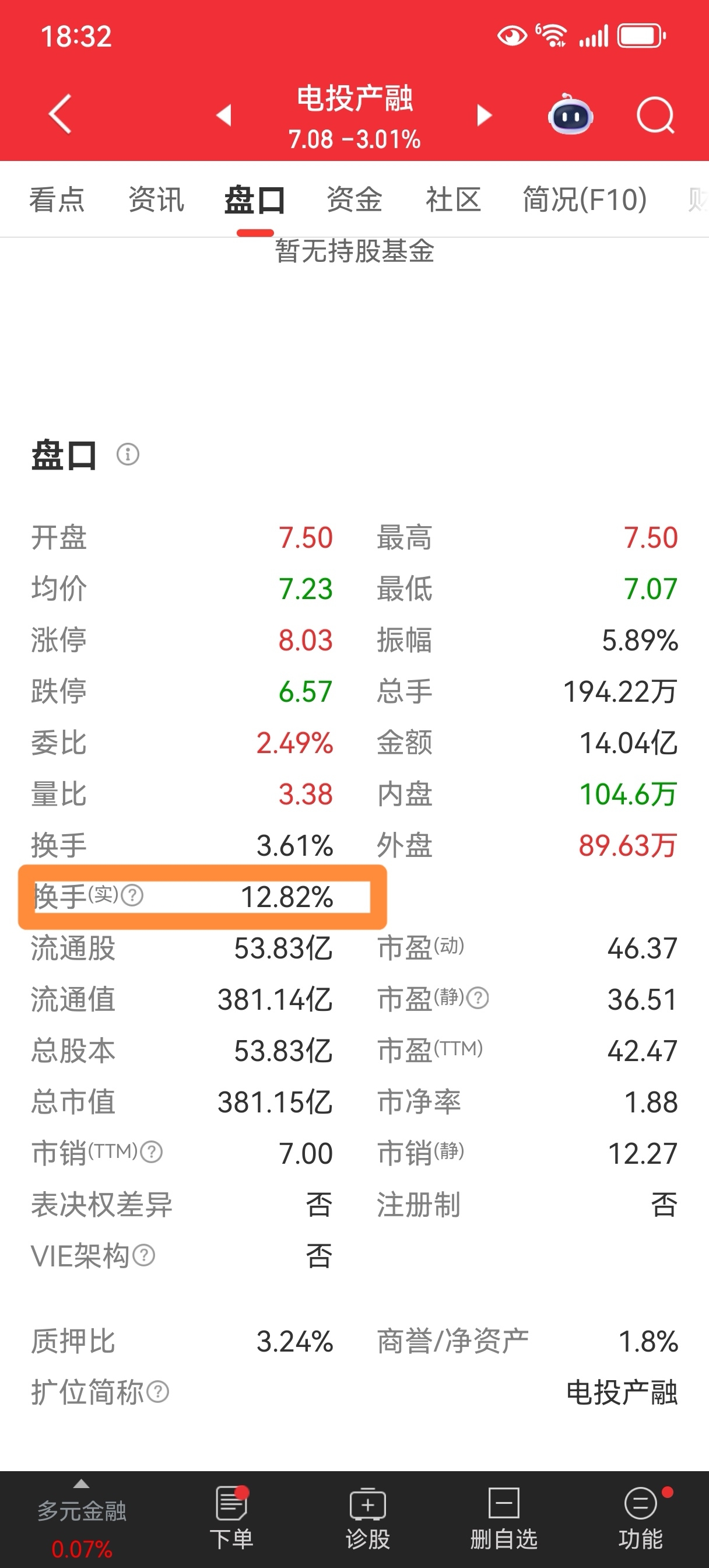 $电投产融(SZ000958)$ 实际换手百分之12.82。今天竟然换手了八分之一筹码。