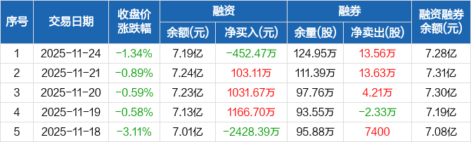 电投产融:融资净偿还452.47万元,融资余额7.19亿元(11-24)