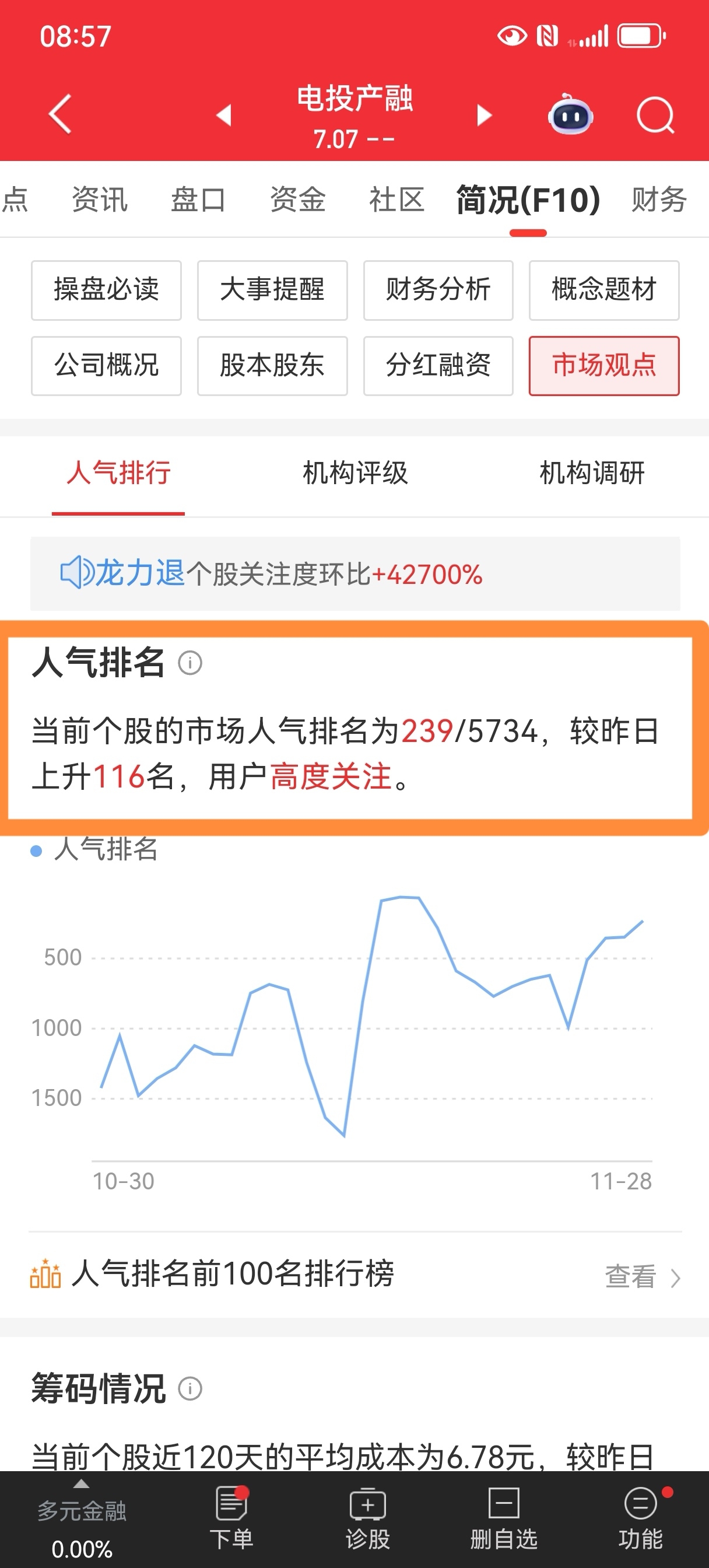 $电投产融(SZ000958)$ 同花顺人气很高第239名,情绪起来了