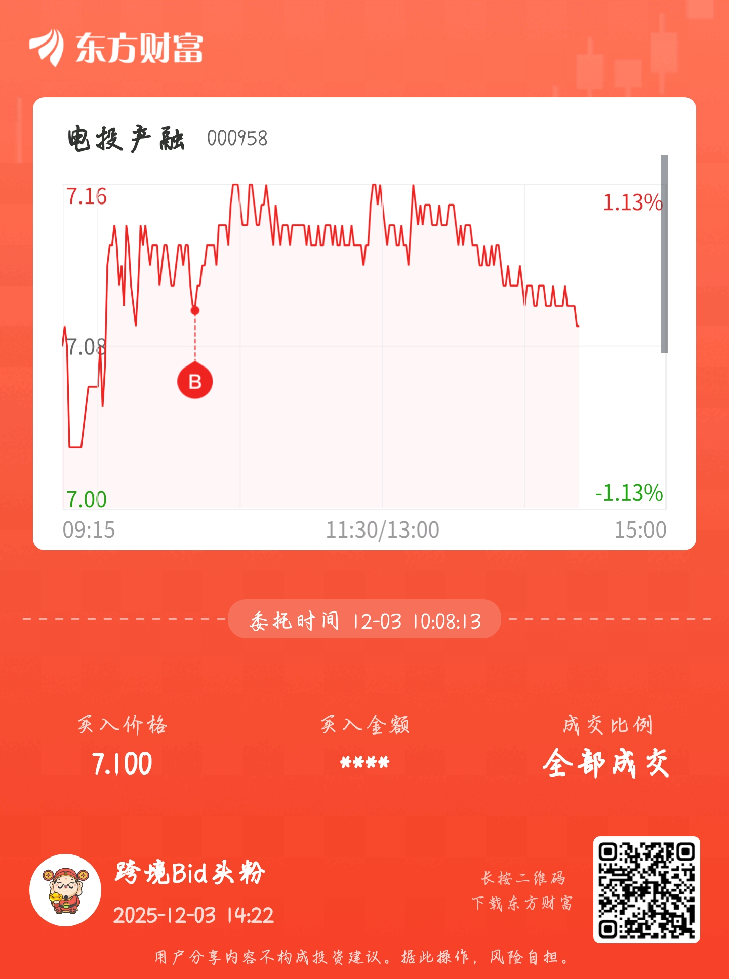 温馨提示: 1.根据《证券法》规定,禁止编造、传播虚假信息或者误导性信息,扰乱证券市场;2.用户在本社区发表的所有资料、言论等仅代表个人观点,与本网站立场无关,不对您构成任何投资建议。用户应基于自己的独立判断,自行决定证券投资并承担相应风险。《东方财富社区管理规定》