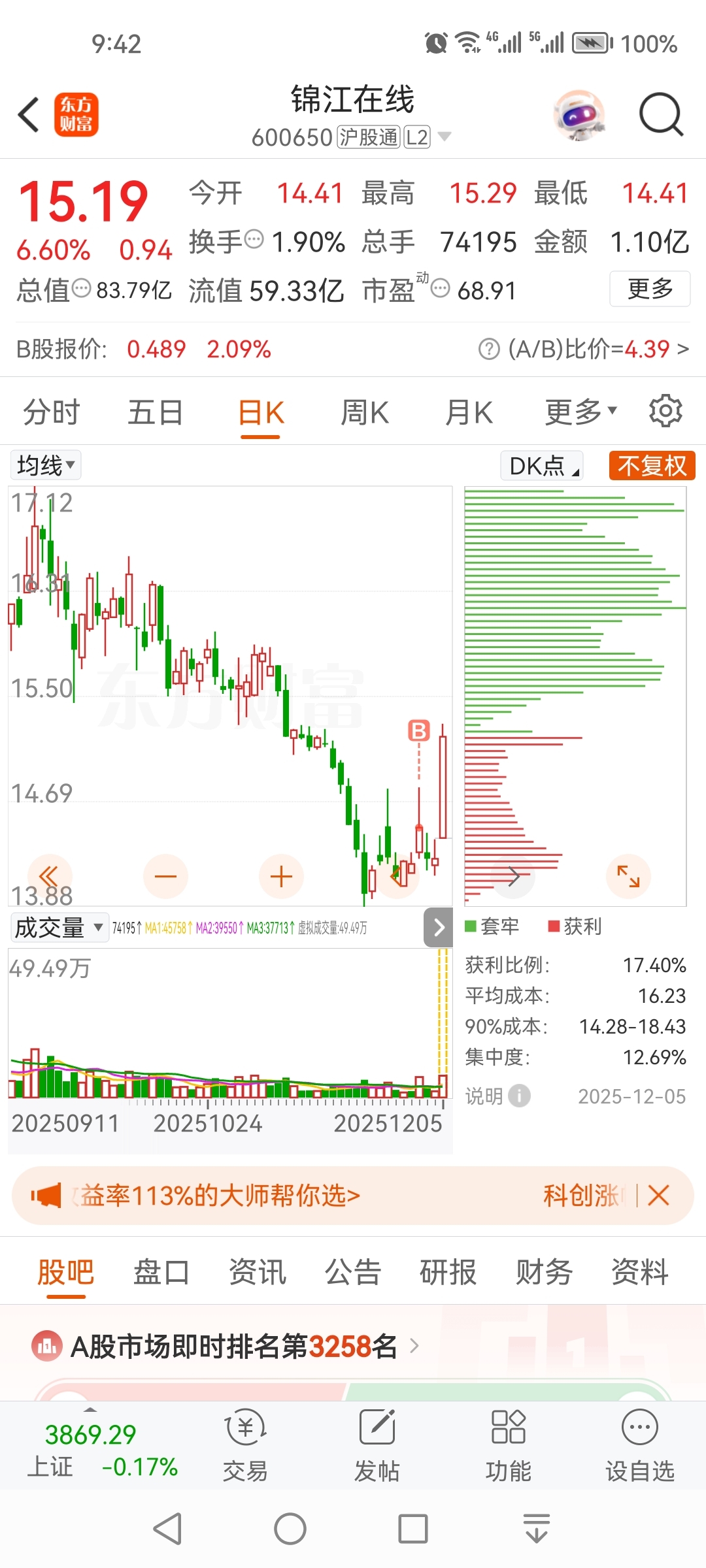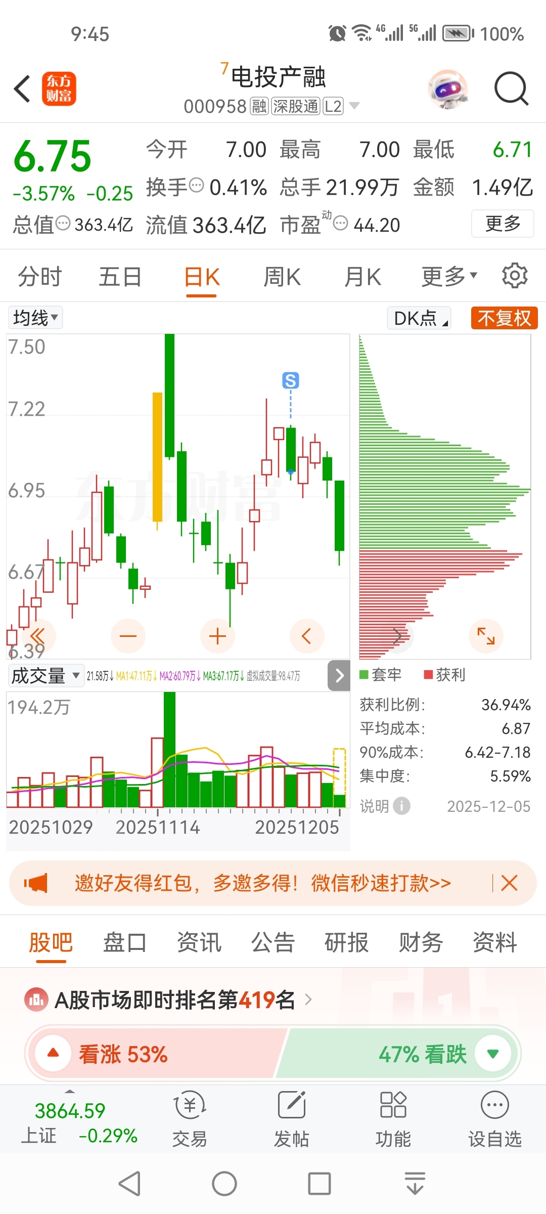 我5天前产融就走了买大众,大众卖了买锦江,只是吧里有个人挑衅我,我就多死他,以后